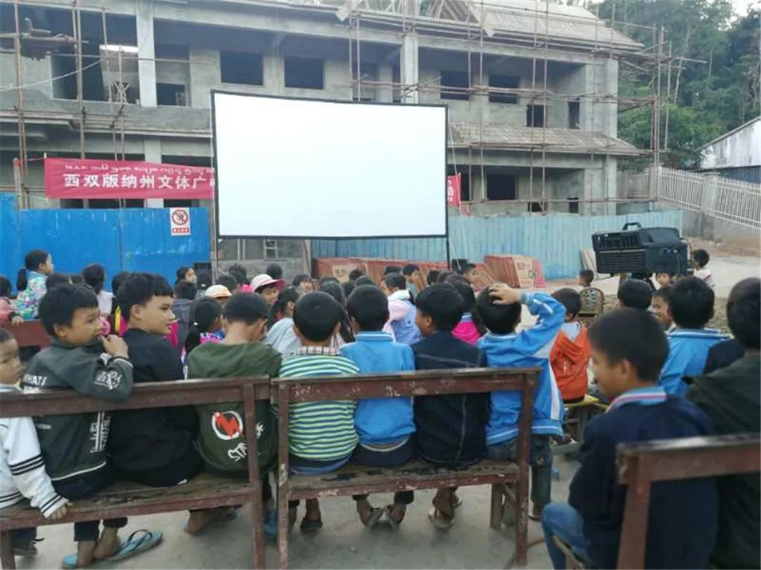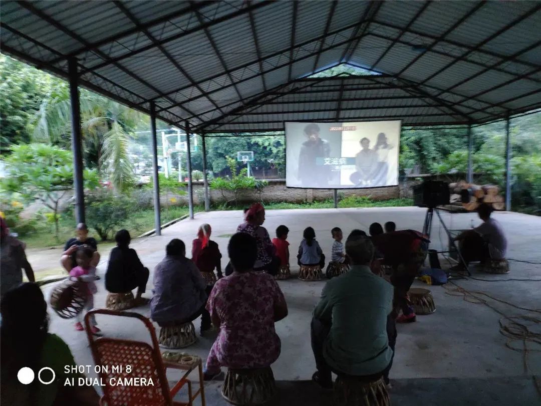 当天,放映队早早来到城子村,挂银幕、布线路、调设备……布置出一个完整的“露天电影院”。晚8时,村民们在现场欣赏到了公益电影《钢铁侠3》《港珠澳大桥》及傣语科教片《解码登革热》。