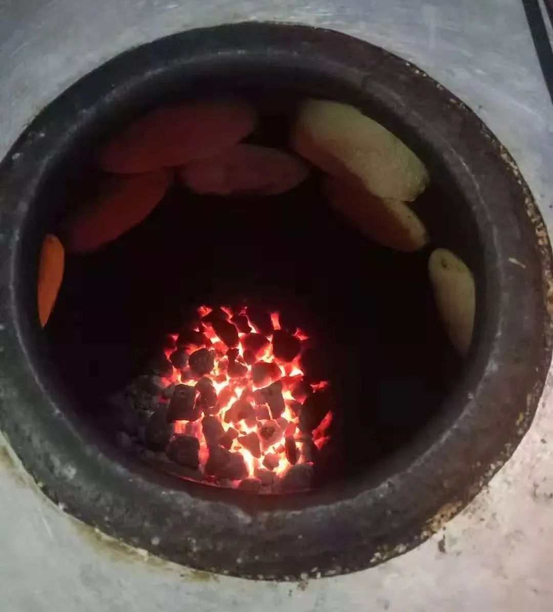 接下来考验功夫了:整张饼贴着手掌和手腕从案板上揭下来,迅速托到烤炉跟前(烤炉就在旁边,只需一个转身),拿眼一瞧,盯住炉内的一个空位,手臂一伸,一贴,一抿,一出,再做下一张。做烧饼要讲究快准狠的。
