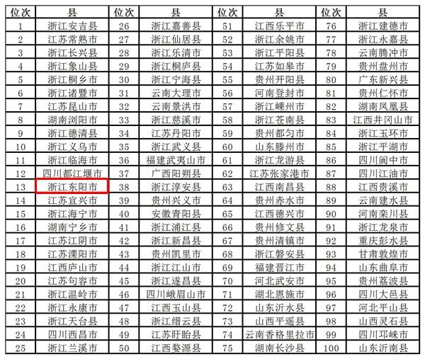 原标题:《排名13位!东阳入选这份全国百强县榜单》