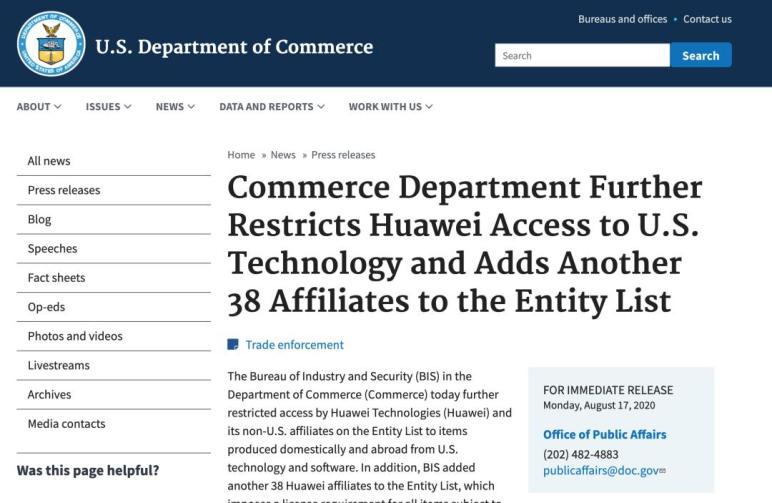 “美国商务部想要进一步监督在清单范围内的企业(以美国的软件或者科技为基础)与华为任何实体的商务往来等。”贾沫对记者说。