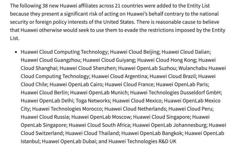 据统计,自从2019年5月美国将华为纳入“实体清单以来”,至今这份贸易保护主义名单上与华为相关的关联公司总数已经达到152家。在今天的声明中,美国商务部同时要求任何华为及“实体清单”上的附属公司作为买方、中间交易者和最终使用者相关的交易都要受到《美国出口管制条例》的限制。这意味着华为或将失去外购芯片的道路。