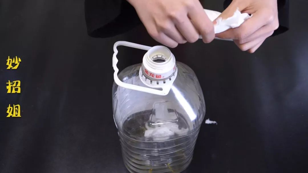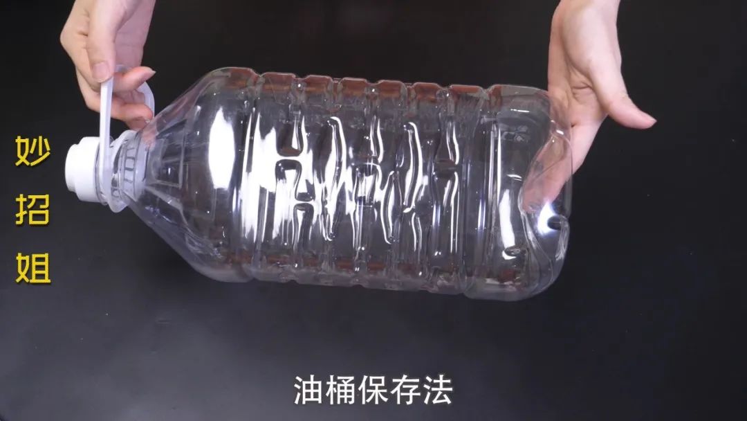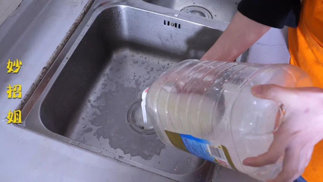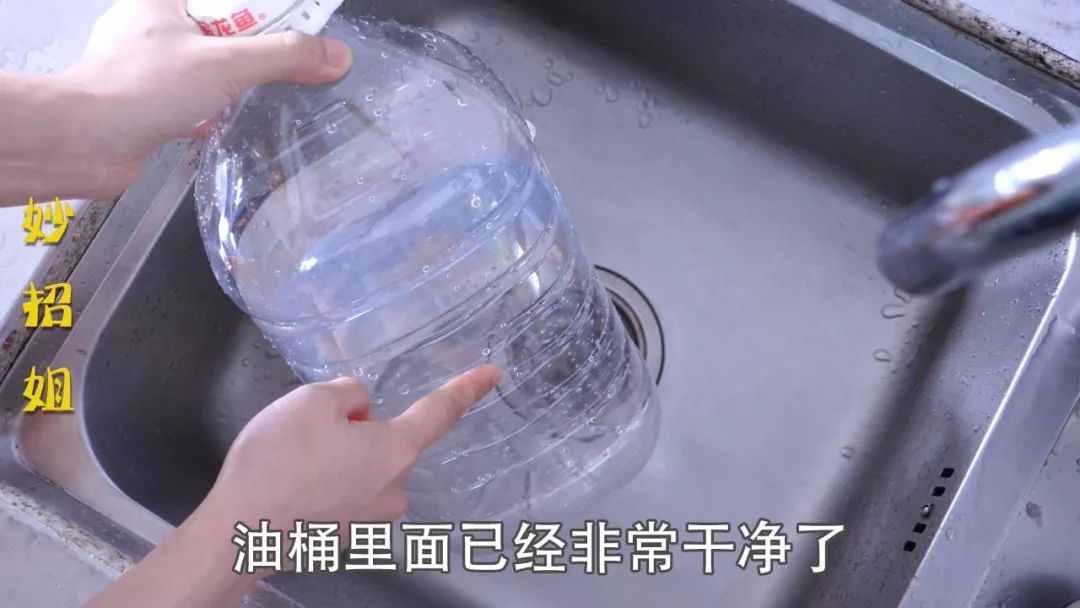 大家看一下,现在这个油桶里面都是残留的油渍,接下来妙招姐就要把它洗得干干净净。