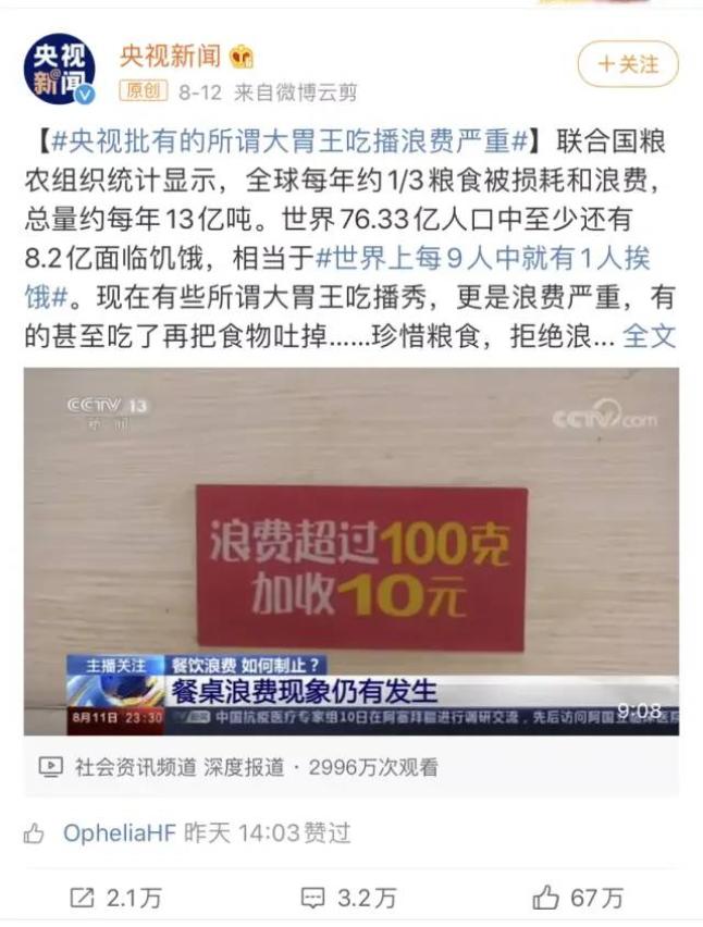 但接连两天,吃播却被央视连续批评叫停: