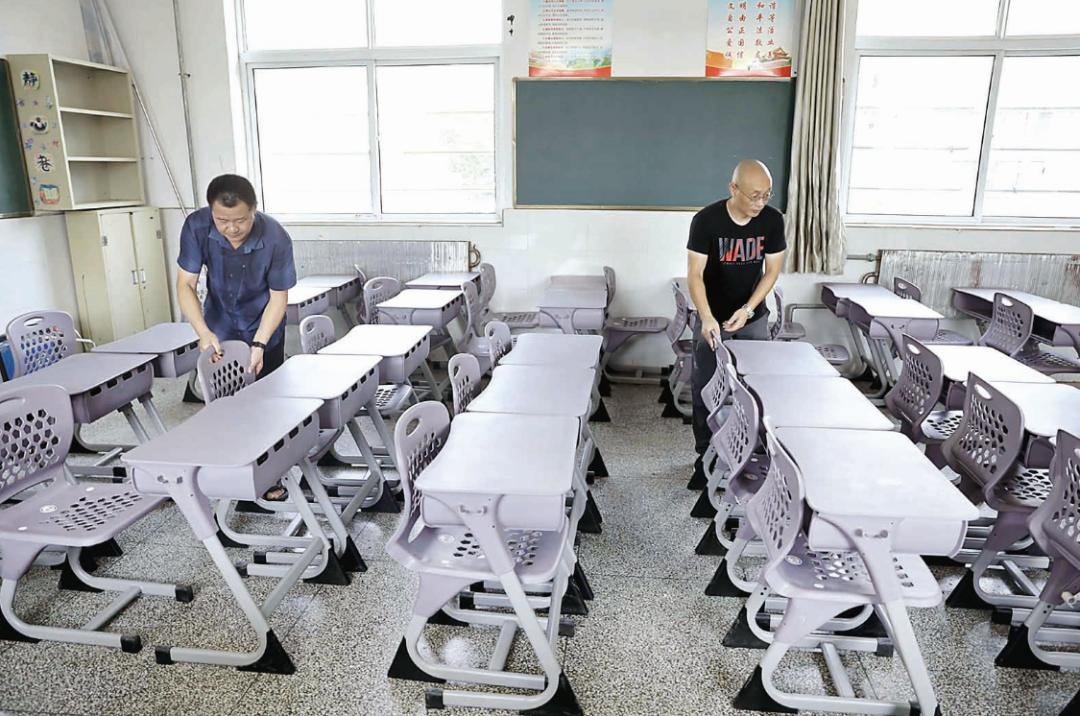 8月18日上午9时,在徐州高级中学青年路校区,记者看到明亮的教室内,崭新又美观的可调节桌椅已经安装完毕。
