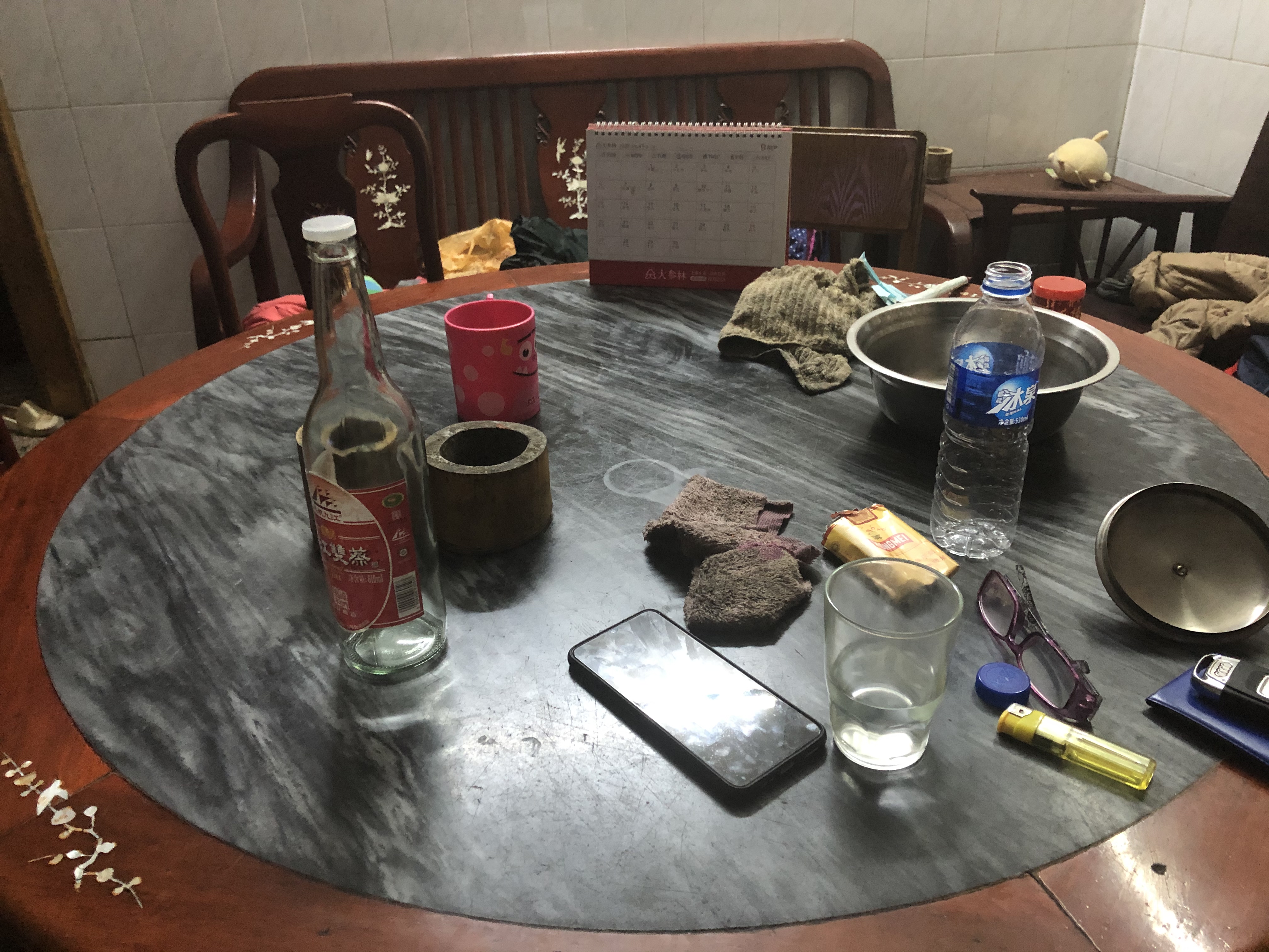 19日上午,澎湃新闻记者来到罗杨家中。这是一栋较为老旧的两层楼房,还是罗杨母亲在世时盖的。罗杨正在喝白酒,身上有酒气,眼珠发红。罗杨称,“一天要喝三瓶”,他喝的是佛山本地酒,地上的空瓶子摆了一排。