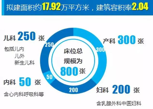 项目规划设置床位800张,其中妇、产科500张、儿科250张。