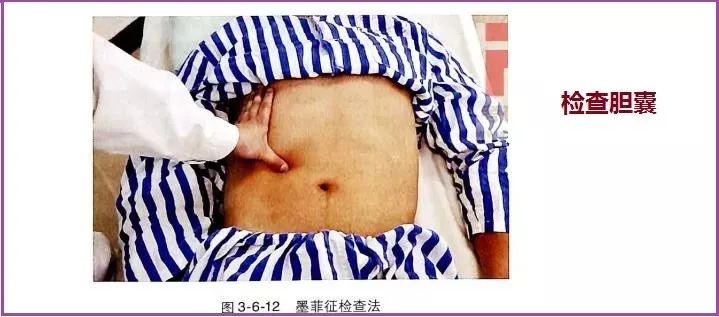 还有一个让了老马怀疑胆囊炎的原因是,老马刚刚给他做了墨菲征检查,结果是阴性的。所谓的墨菲征,就是让患者平躺,医生用大拇指压迫患者的胆囊区域,然后让患者深呼吸,如果真有胆囊发炎,很有可能在患者深吸气的时候压痛会剧烈加重,因为深吸气的时候胆囊更加靠近腹壁,这时候我们用力压迫这个位置,肯定会加剧疼痛。