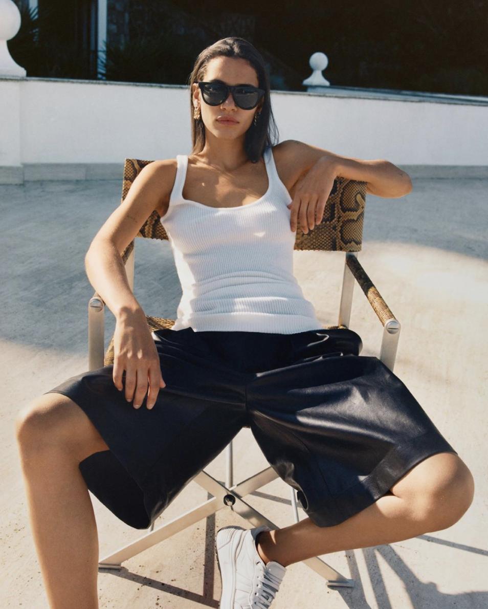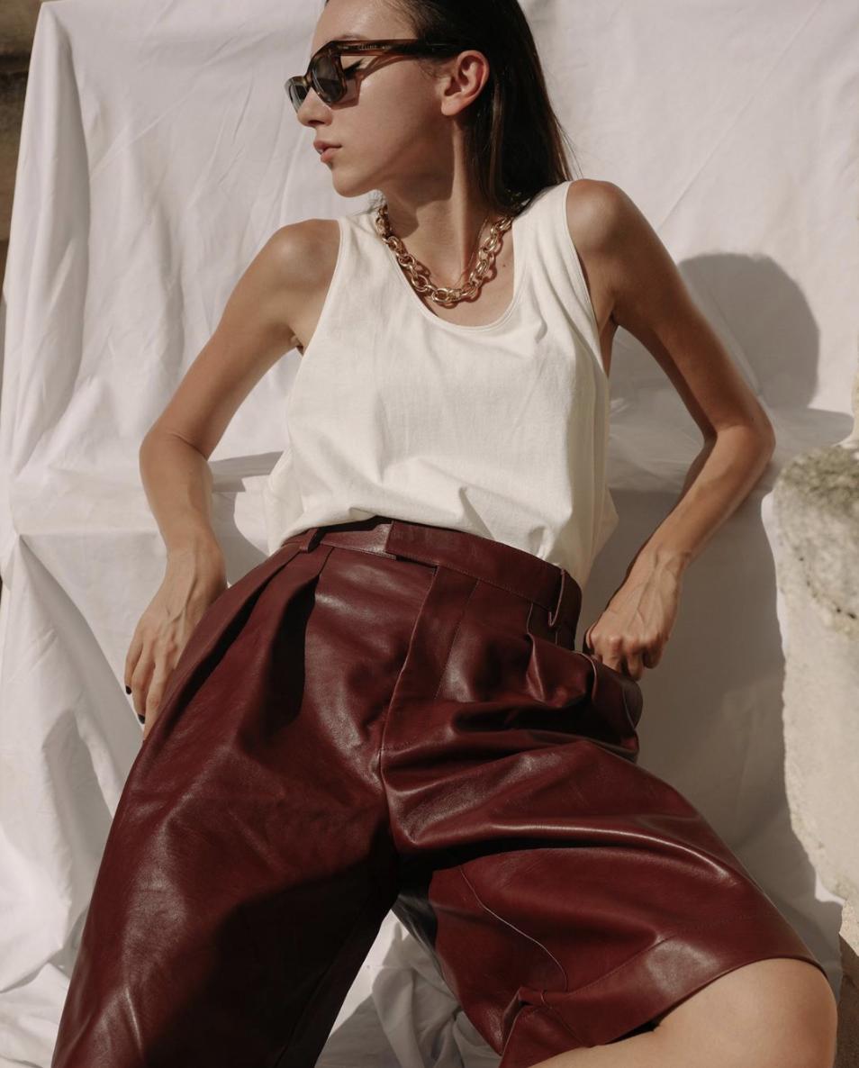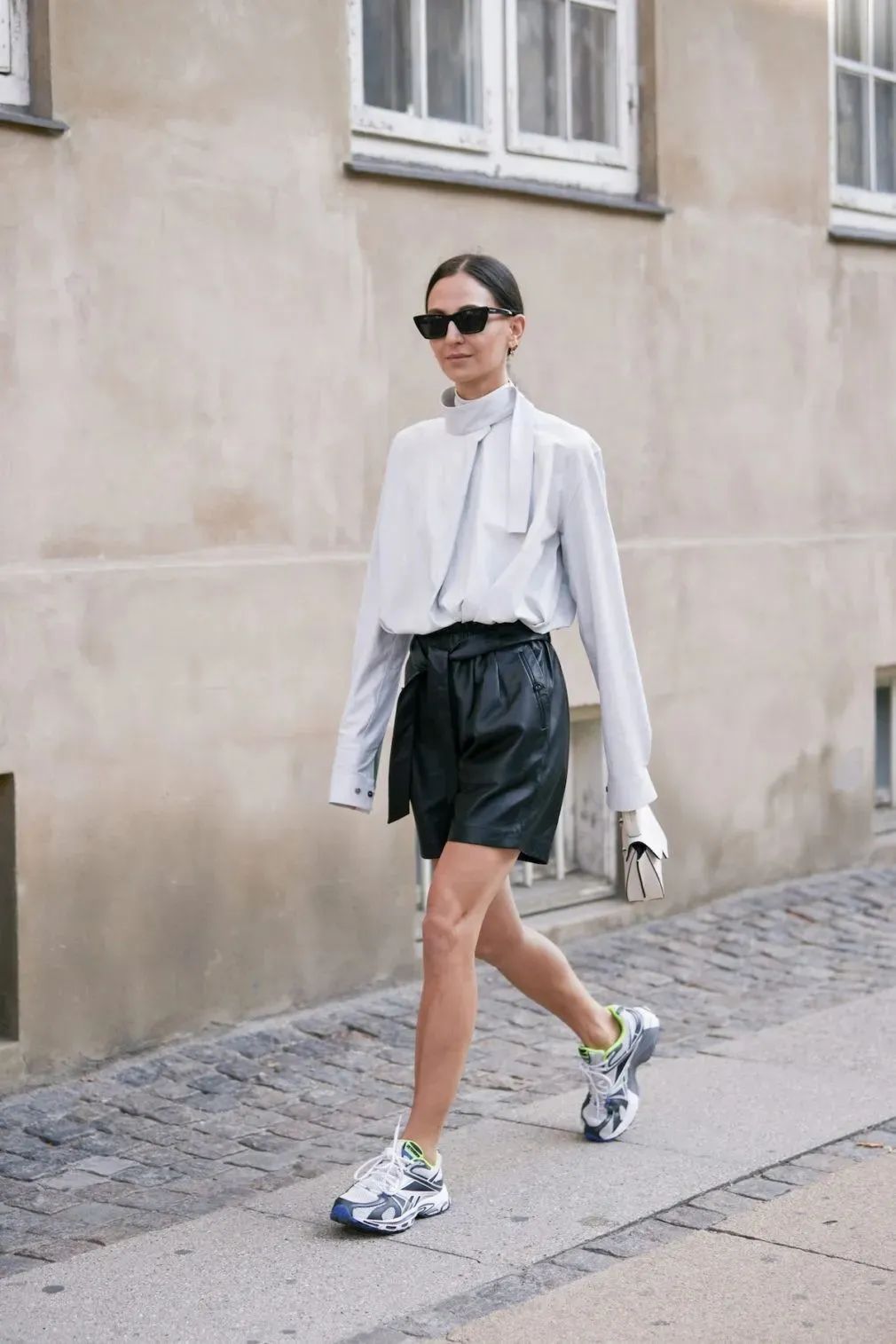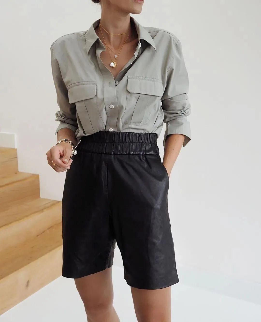 皮质百慕大短裤就完美的解决了这个问题,显高遮肉又酷感十足,反正我是爱了~
