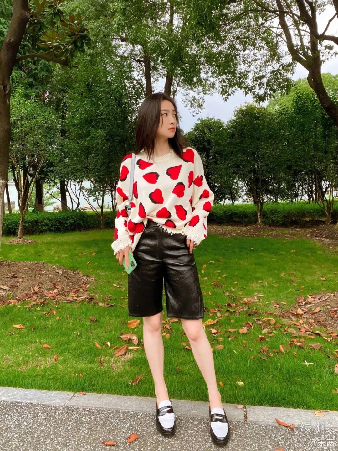 如果担心hold不住,可以借鉴宋茜的穿搭,上半身选择一些可爱风格的单品来中和ta的气场。