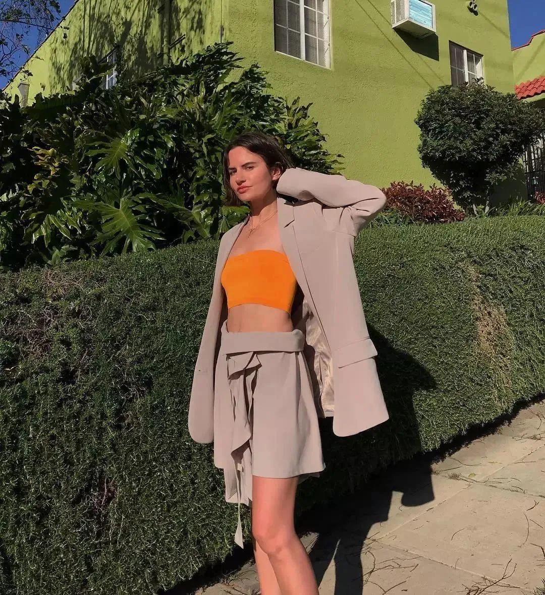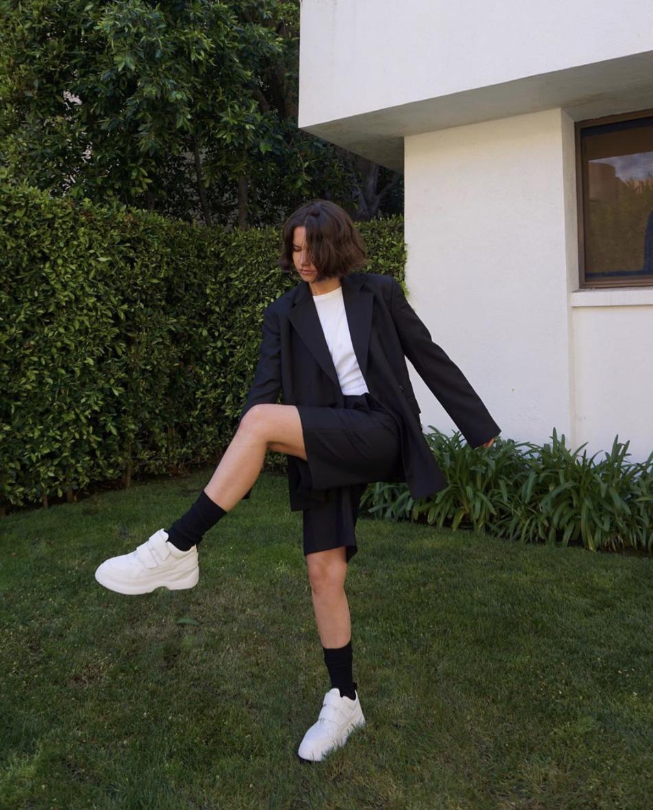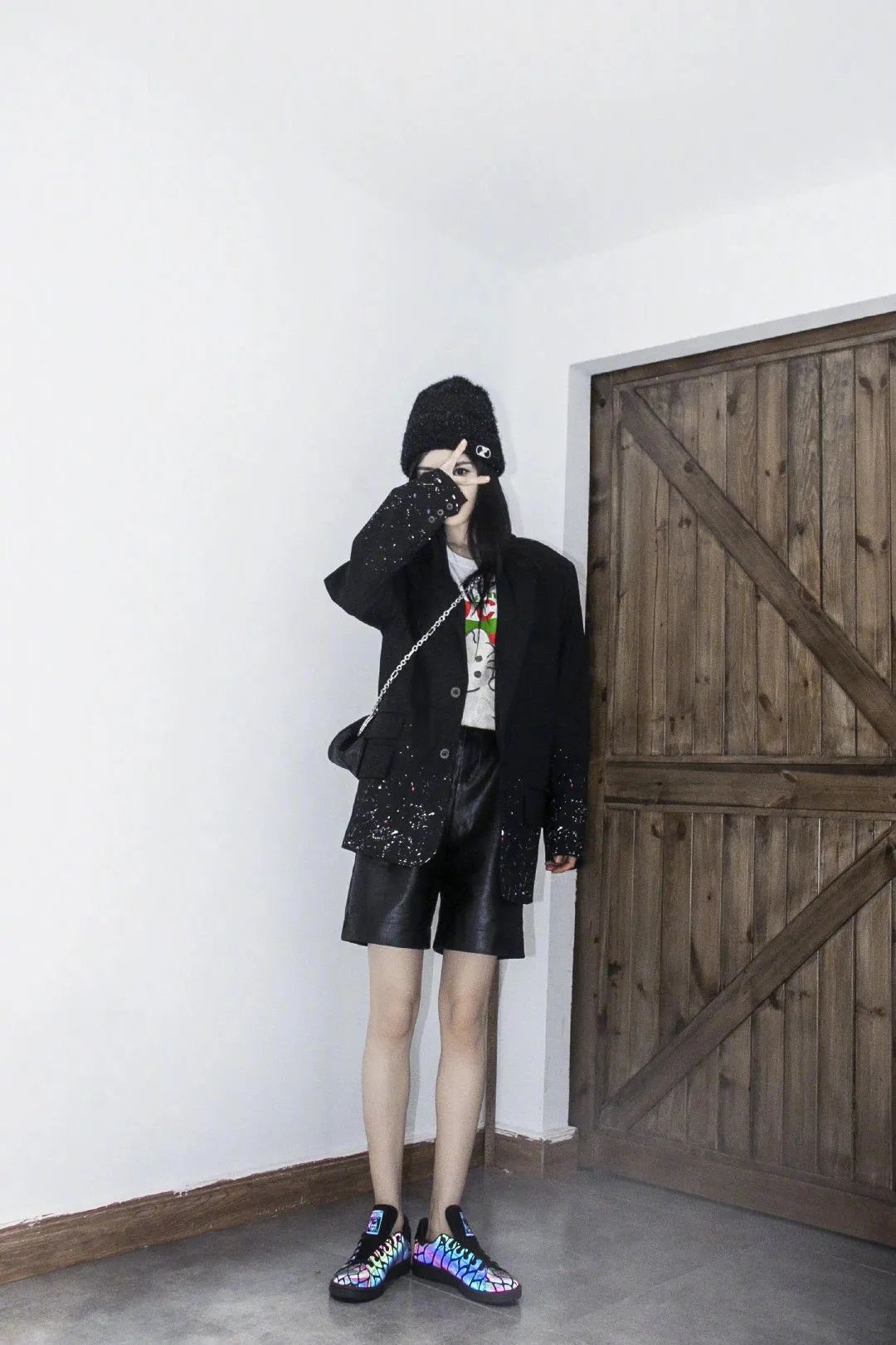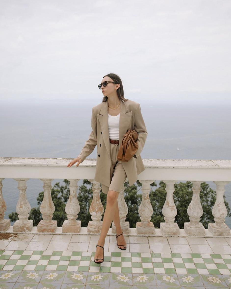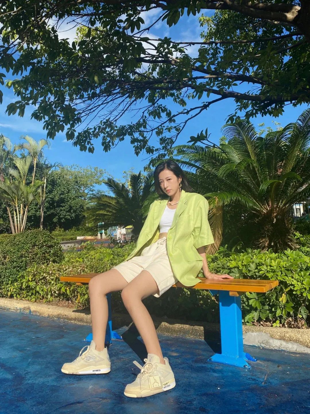 万茜同款的西装百慕大短裤是今年大热的款式,搭配同色系的西装,不仅是塑造气场的神器,同时是个非常方便的懒人式搭配法。