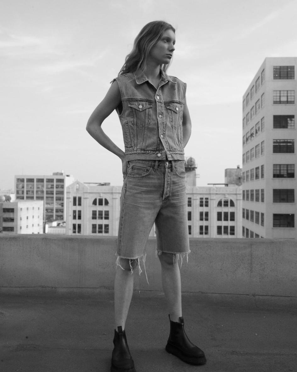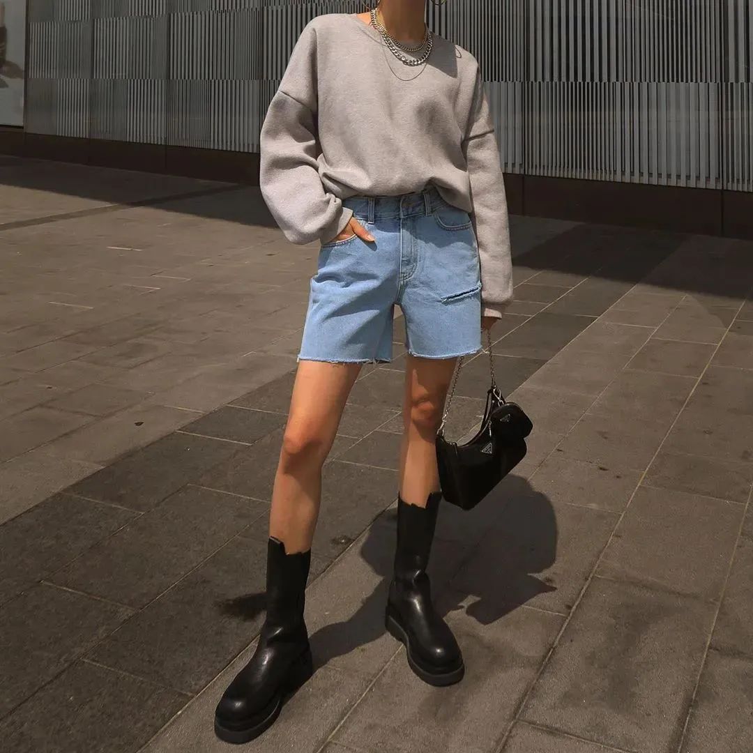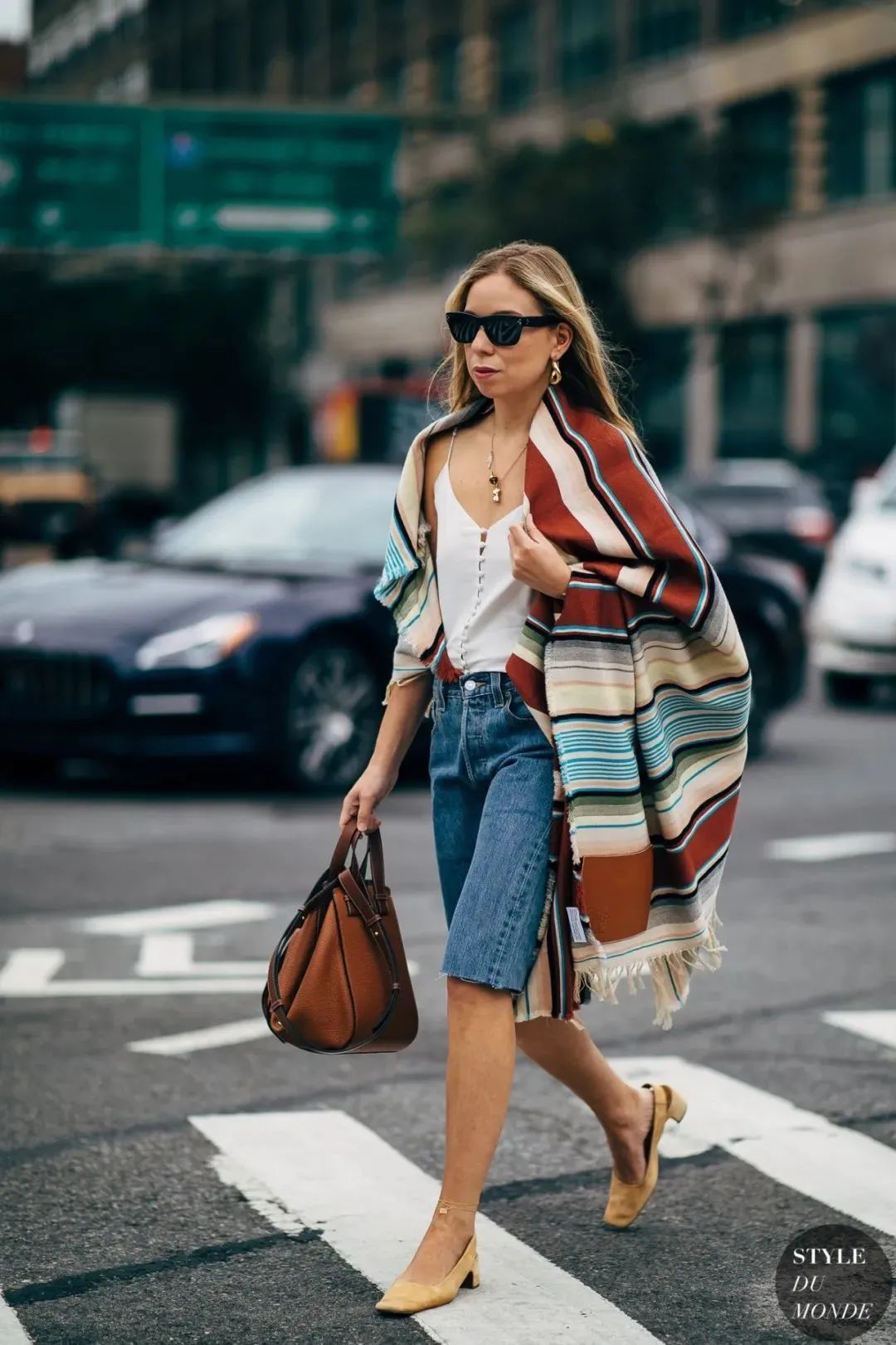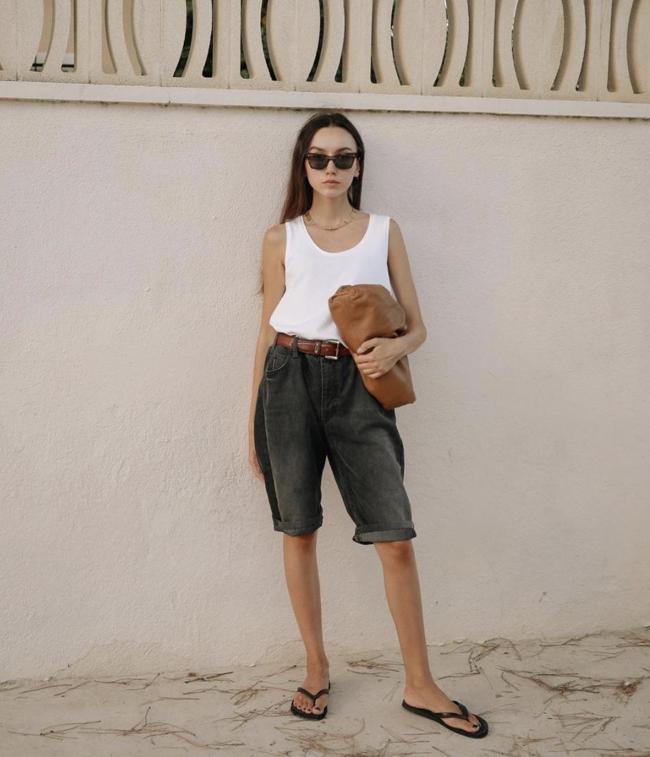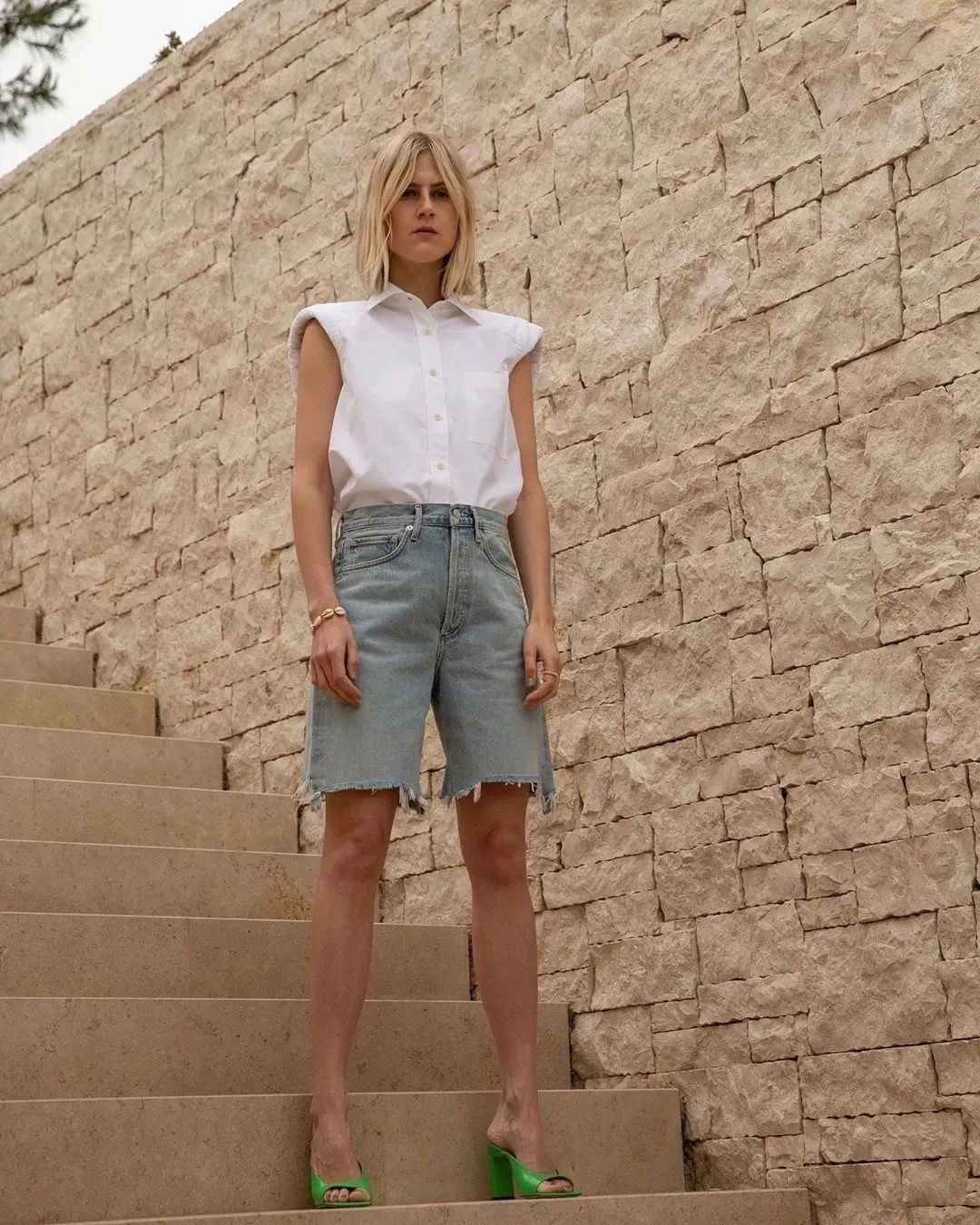 比起西装百慕大短裤,休闲风格的百慕大短裤就更适合日常穿着了,比如日常百搭的牛仔百慕大短裤~
