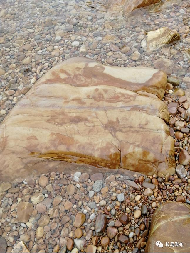 抬头看完崖壁,俯首再看脚下,美轮美奂的奇礁异石,哪一个也像是经过画家的手,描过红,泼过墨。山水、人物,天马行空;素描、国画、油画和动漫,各门各派应有尽有,仿佛置身于一个艺术的殿堂。这里的鹅卵石个头比较大,也像礁石一样,有谜一般的图案,更是考察我们到此地有无眼缘的机会,如果和她有缘,你就会欣赏出她独特的美,紫的有一种高贵,黄的有一种浪漫,白的有一种纯真,灰的有一种雅致。