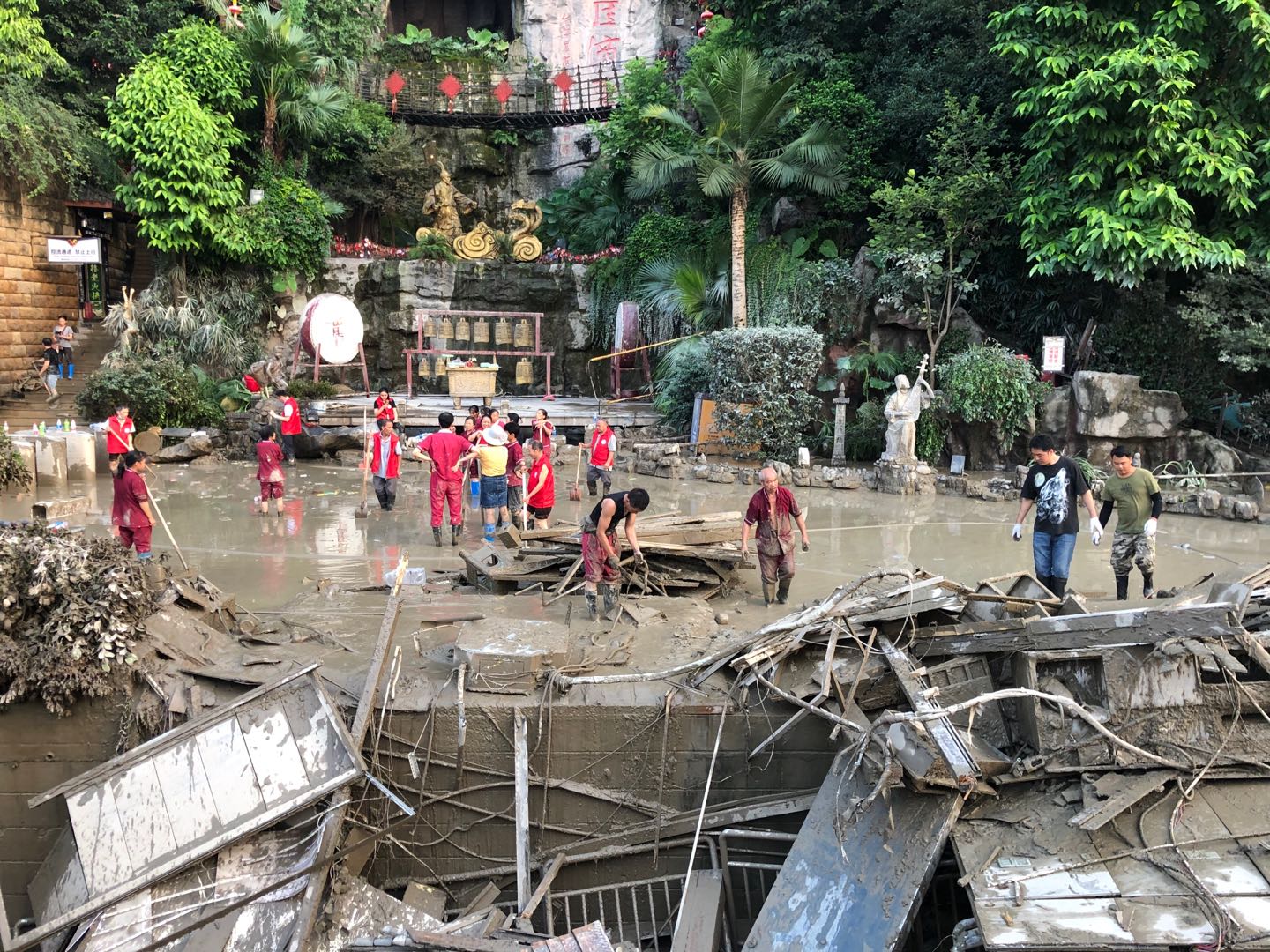 “洪水退去,淤泥逐渐凝固胶着,人力清理难度较大。”杨渝松说,他们先用铲车进行第一次清除,推走大部分淤泥后,再由人工进行洗刷,大大提高了效率。