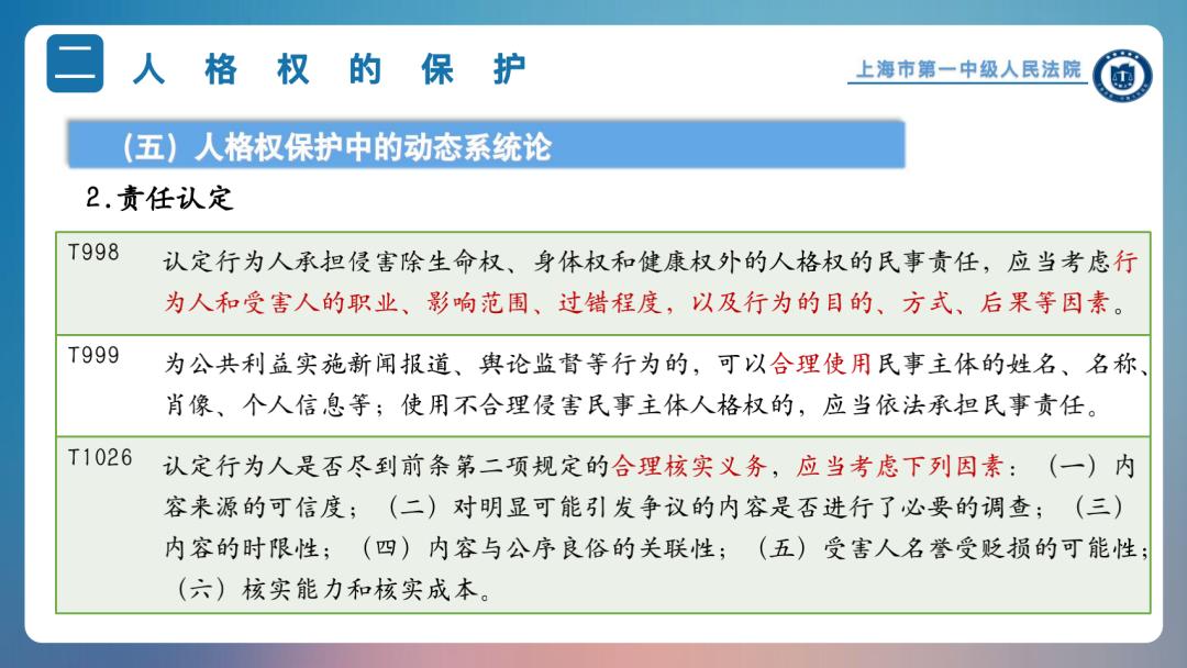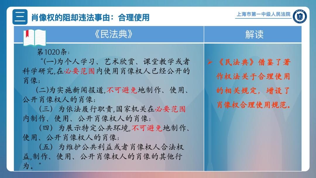 浦东法院六里法庭的顾权副庭长认为,《民法典》体例结构沿袭了潘德克顿体系,人格权编条文兼有权利宣示和行为规范的内容,对法律技术提出了较高要求,需要通过案例的指导补充立法缺漏之处。