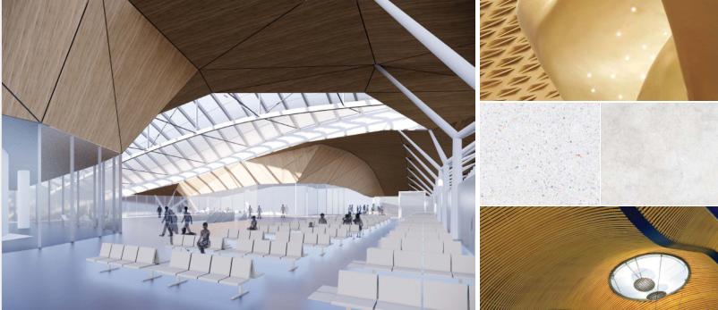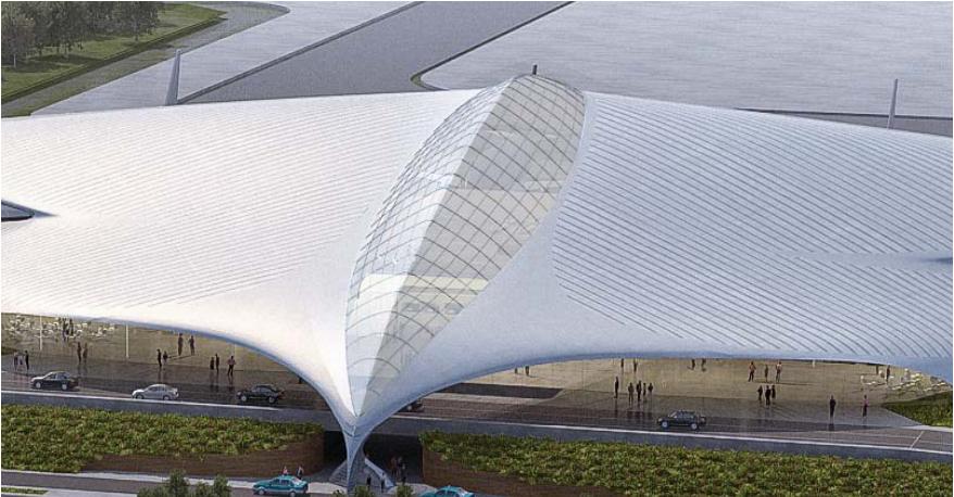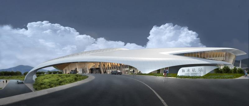丽水机场新建航站楼建筑面积12100平方米,建筑高度23.95米,地上二层,航站楼前设置雨棚945平房米。