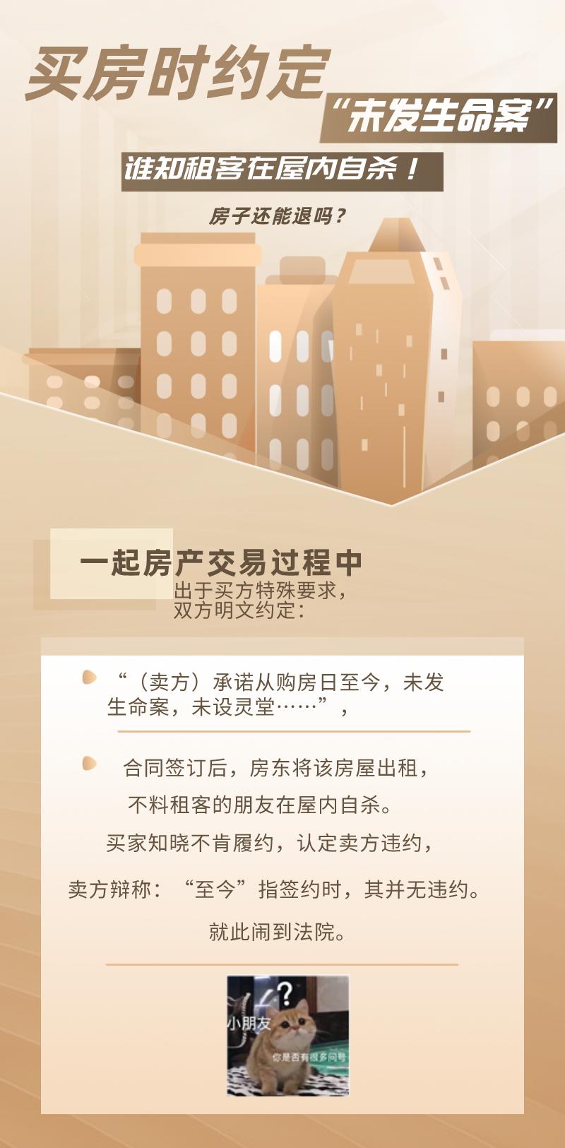 买房时约定“未发生命案”,谁知租客在屋内自杀!房子还能退吗