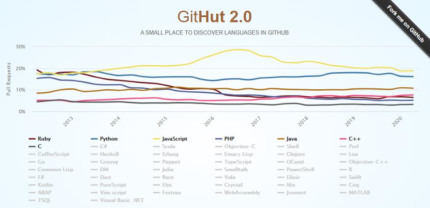 正如 PyTorch 急速取代 TensorFlow 的位置一样,编程语言的流行趋势变化也很快。