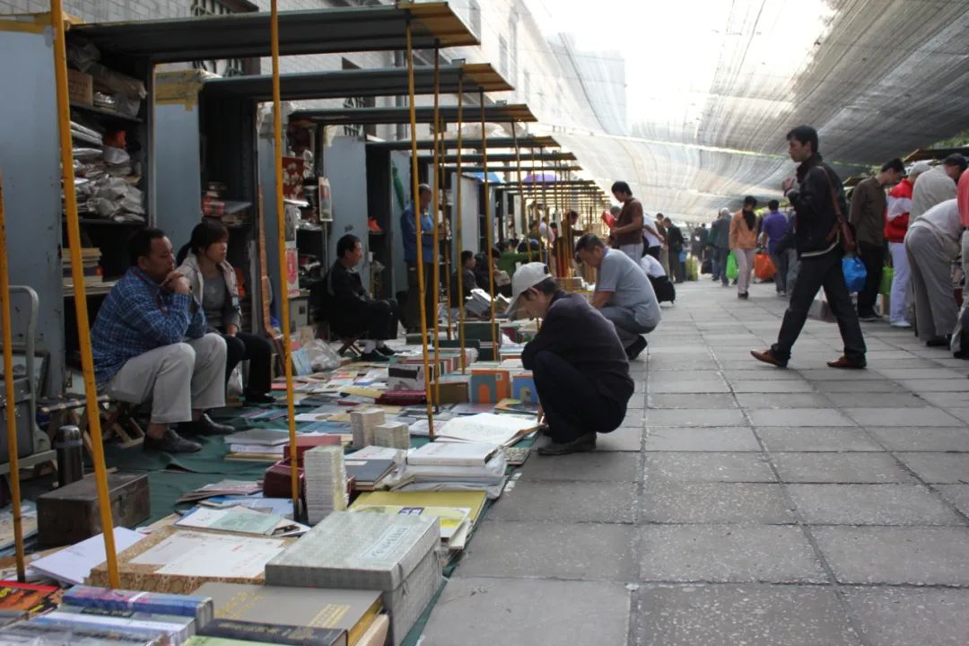 他们的私人淘书史里,贯穿着横二条、虎坊桥大库、海淀古书一条街、六里桥中国书店、灯市口、玉泉路书摊、中关村体育场书摊、海王村、报国寺、潘家园等等名字以及“绿王八壳本”这样的诨名术语;而对于创办于八十年代中期的劳动人民文化宫书市(首都图书交易会)、北京古籍书店书市(中国书店书市、北京图书节古籍分场),韩智冬《那些年北京的书店书市》提供了不少细节与准确的时间节点,同样的场景也见于此前谢其章《海王村书肆之忆》、赵龙江《拾到的知堂遗物》(均收录于《买书记历》)等文中。经过二三十年的变迁,这些当代北京旧书业史上的地标或盛事,有的业已消失,有的改头换面,失去了原来古旧书交易的功能,迄今还能为人们津津乐道的,大概只余潘家园。然而潘家园早已不再是他们瞩目之地,当年谢其章斜挎背包,携手“小赵”(赵国忠)、“小柯”(柯卫东)逛潘家园的景象恐怕再难出现了。