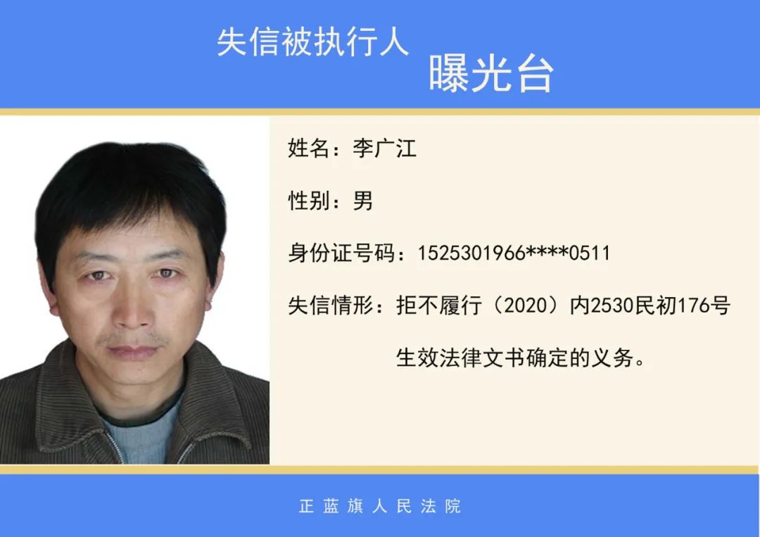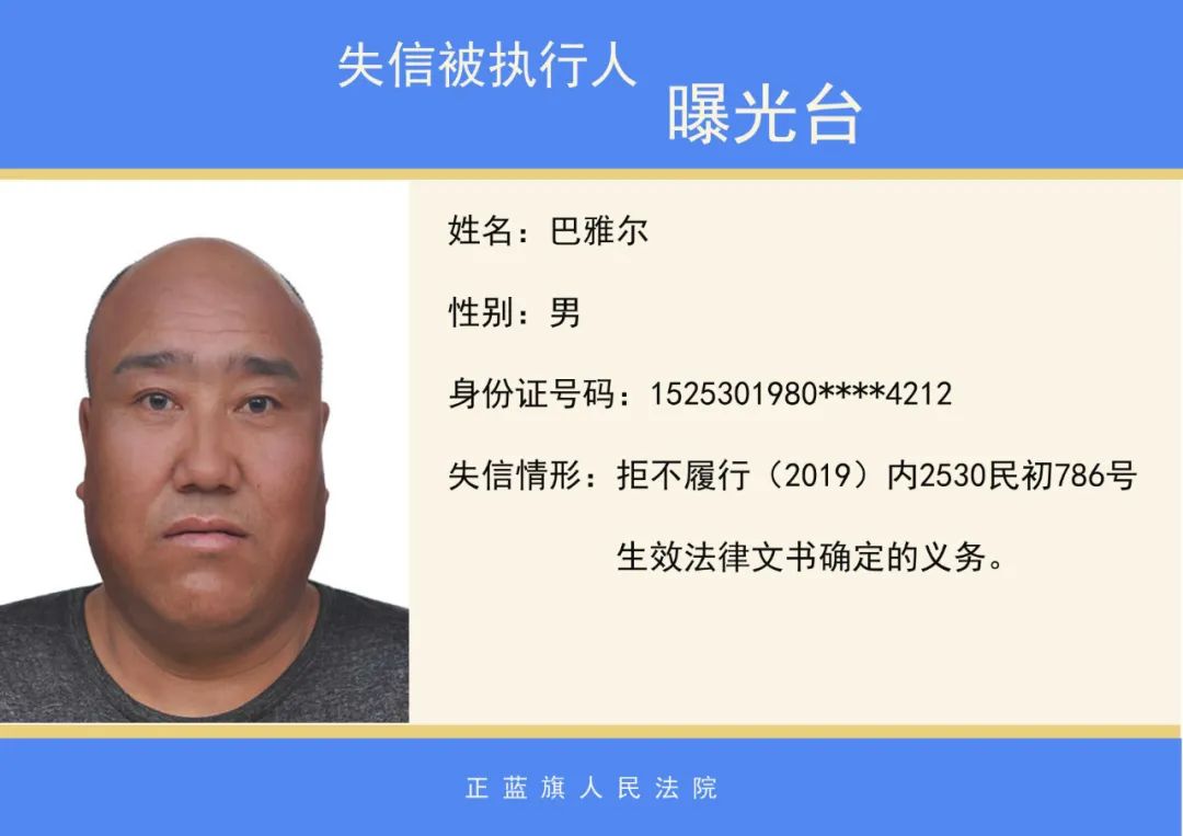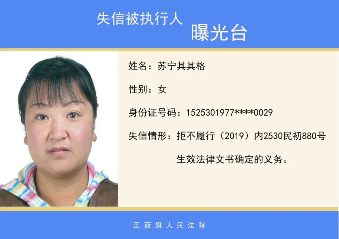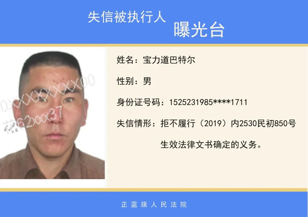原标题:《正蓝旗人民法院2020年第二批失信被执行人名单公示》