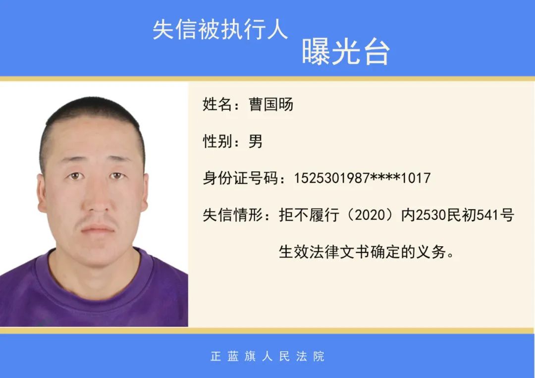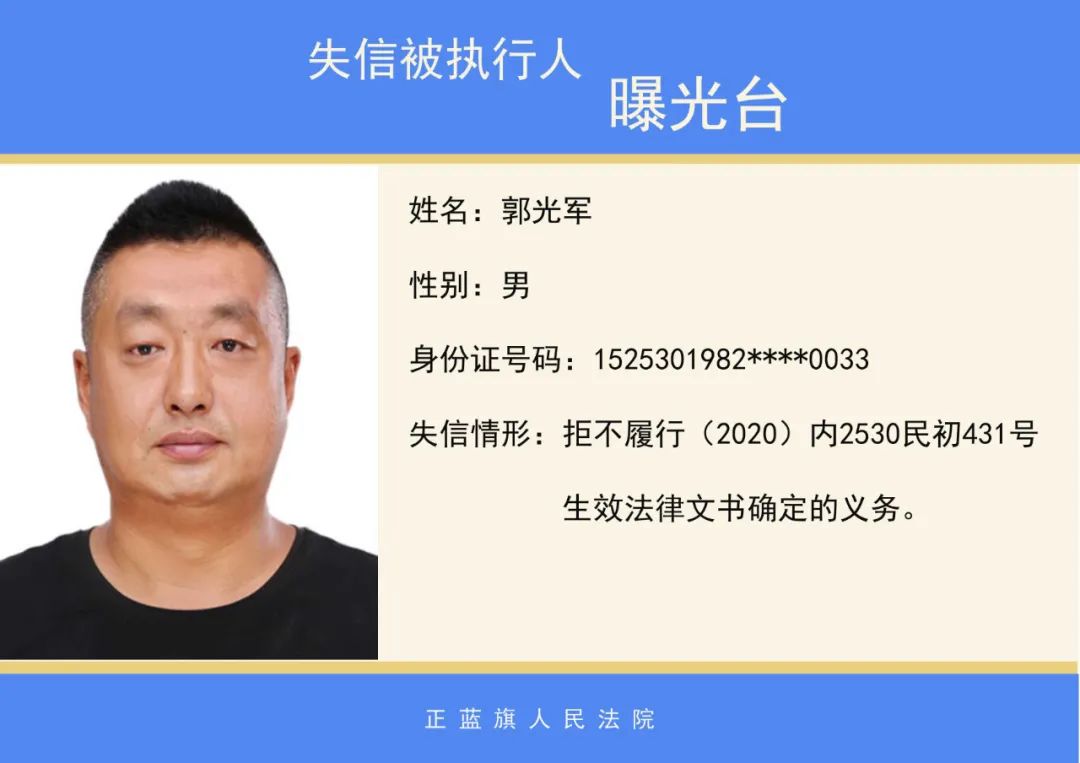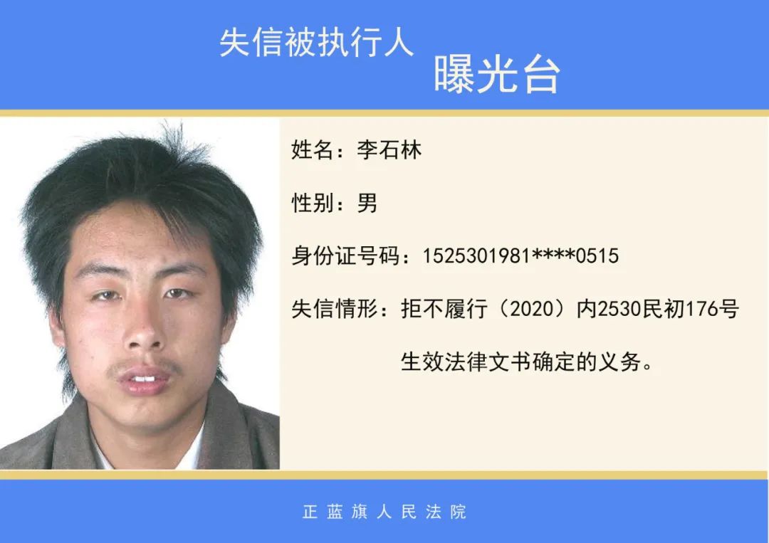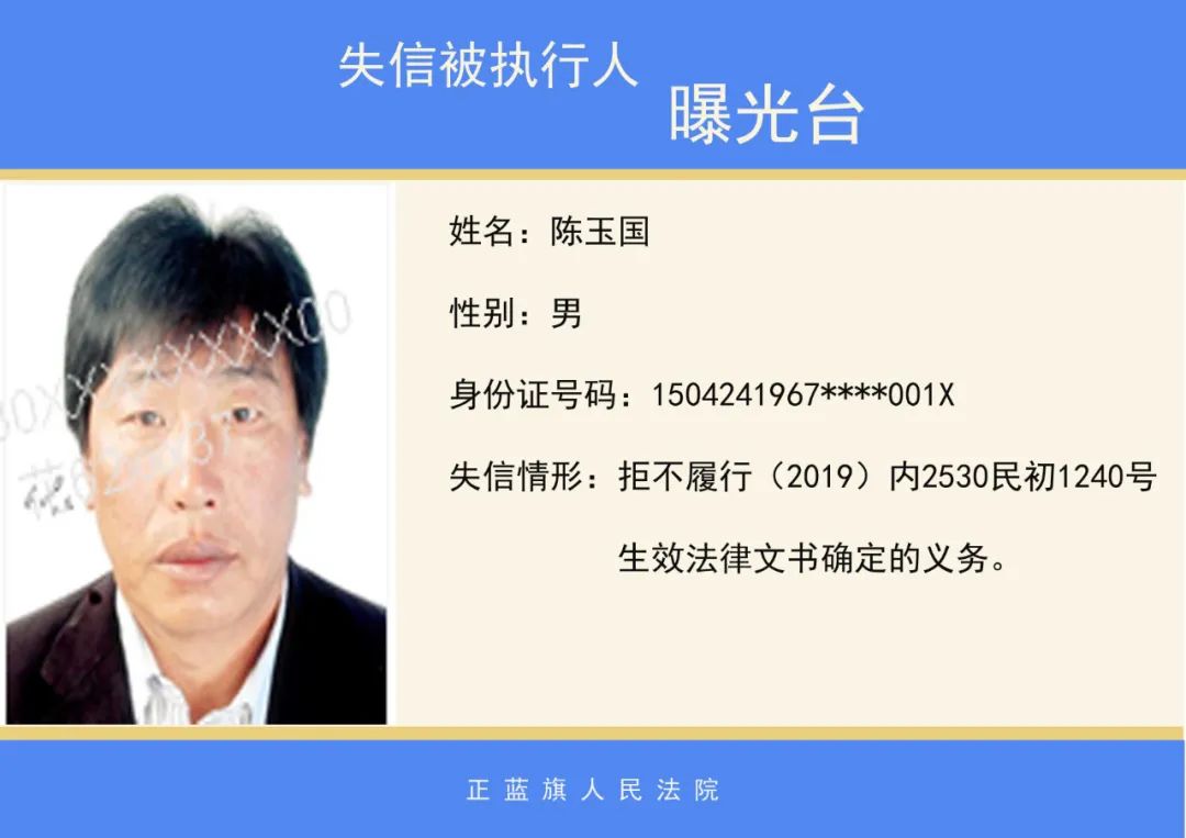 原标题:《正蓝旗人民法院2020年第二批失信被执行人名单公示》