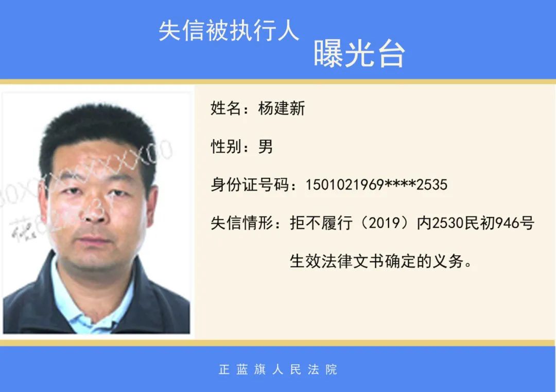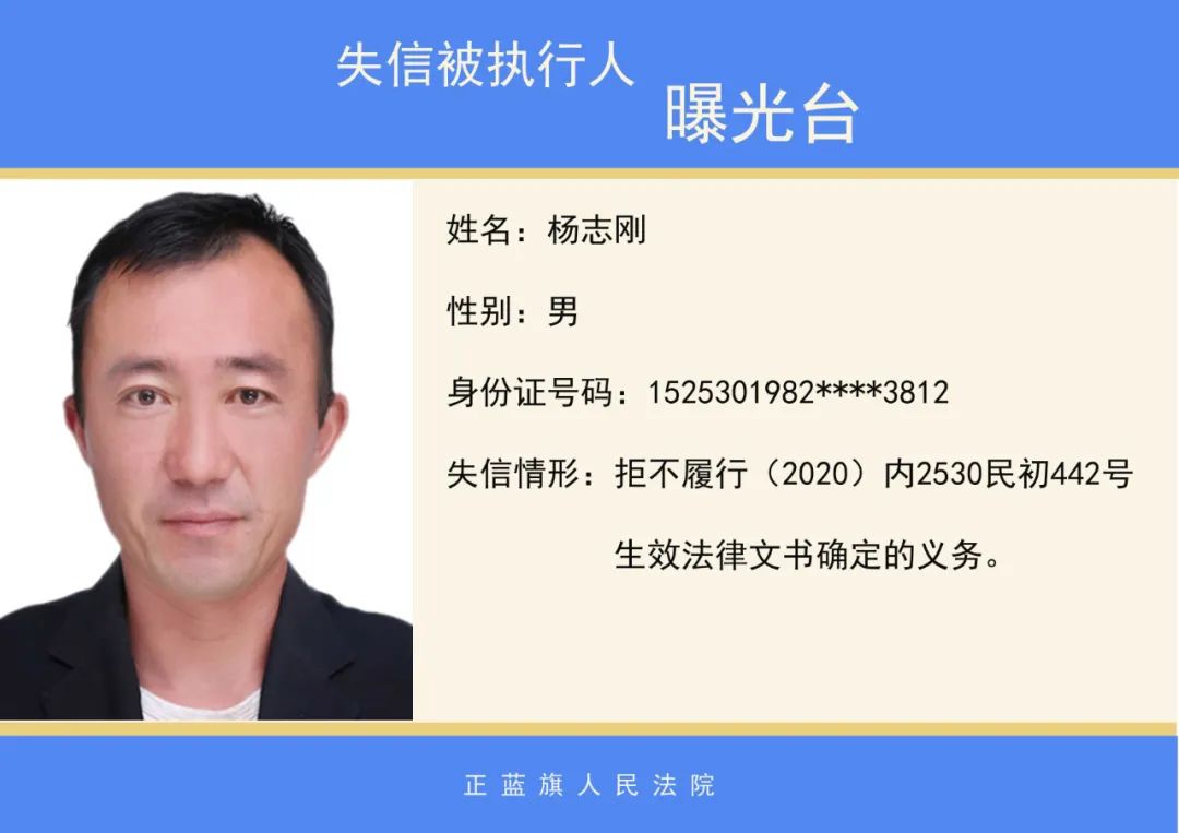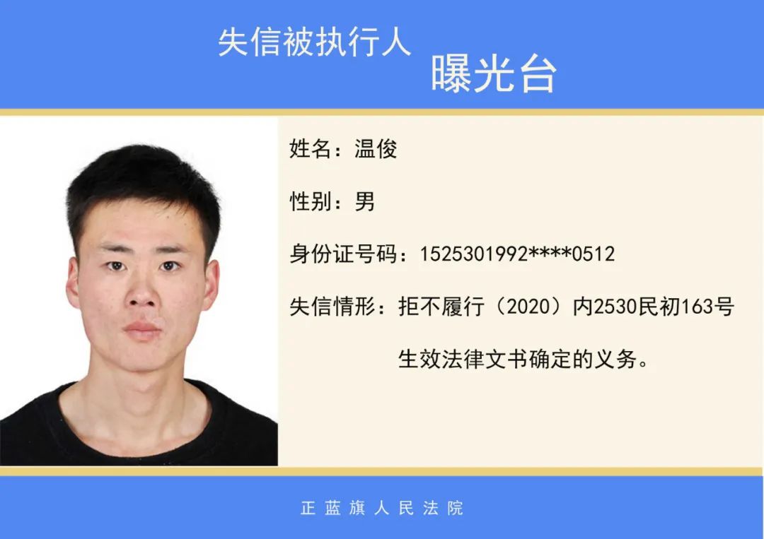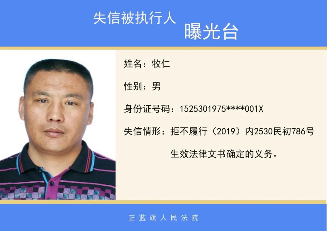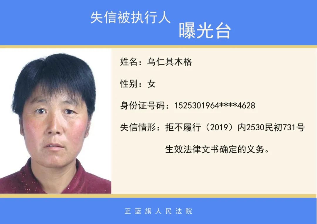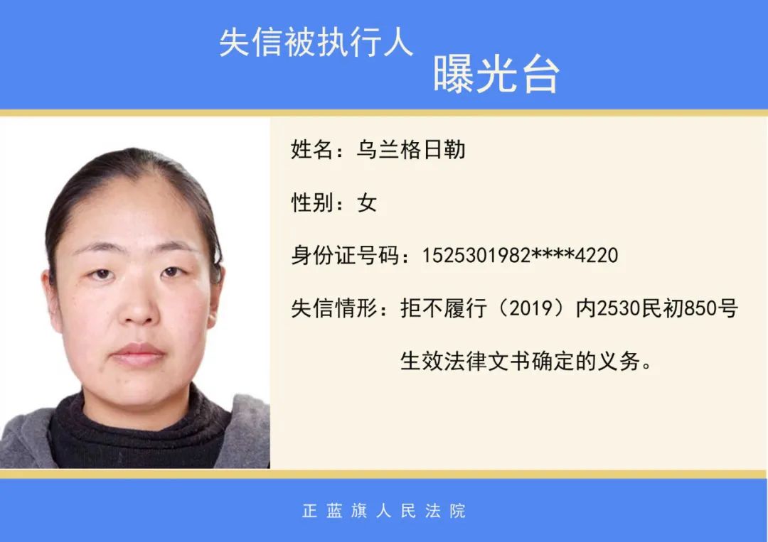 正蓝旗人民法院2020年第二批失信被执行人名单公示