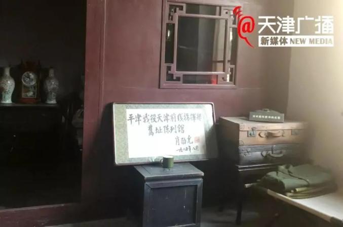 进入平津战役天津前线指挥部旧址陈列馆,一眼就能看到陈列馆门口上方悬挂着一块牌匾,它是1985年8月由原海军司令肖劲光为该馆题词后陈列于此作为陈列馆的馆名。