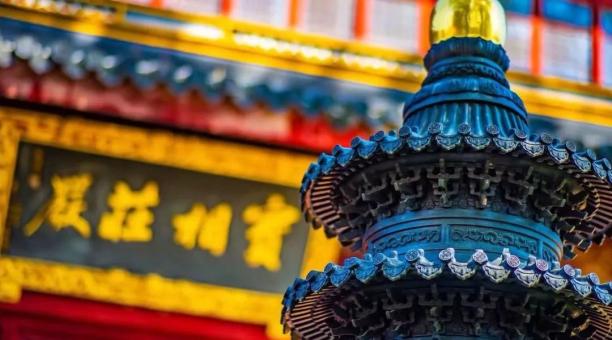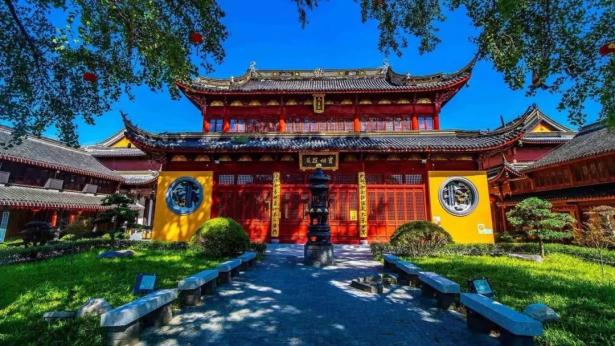 寺院建筑形式采用江南苏式古代建筑风格,结构古朴且典雅。