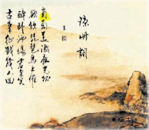 “葡萄美酒夜光杯,欲饮琵琶马上催。醉卧沙场君莫笑,古来征战几人回?”酒筵上甘醇的美酒盛满夜光杯,歌伎们弹奏着琵琶助兴,想到即将奔赴沙场杀敌报国,战士们个个豪情满怀。