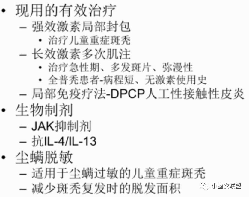 尽管斑秃多会在1年内逐渐缓解,及时就医可以加速毛发再生的速度,缓解患者焦虑心理。常见的斑秃治疗方法如下图。