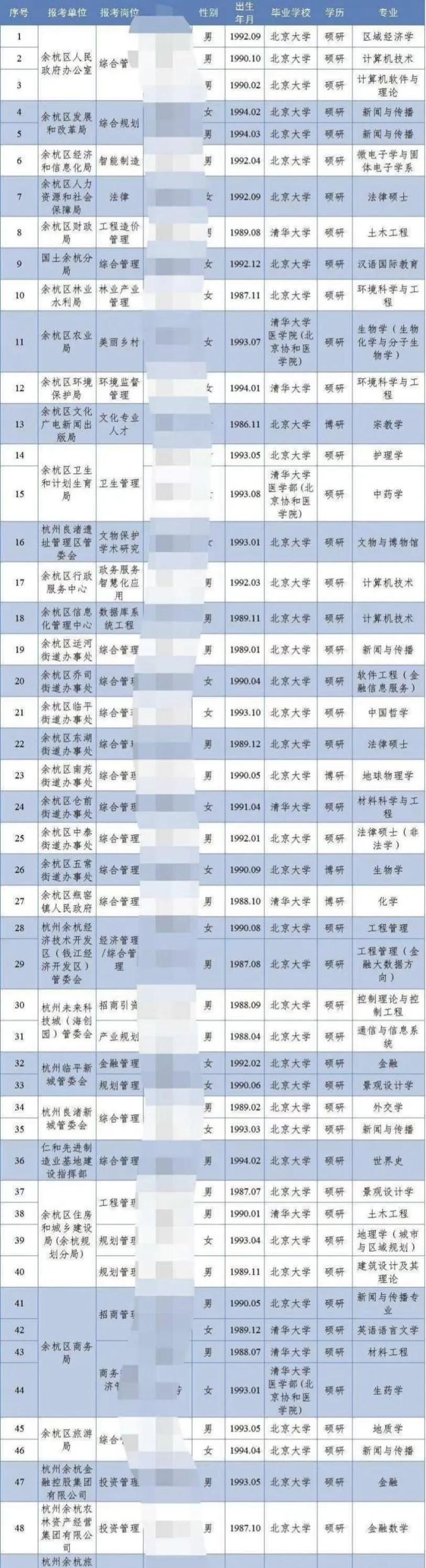 据报道,8月22日下午,经杭州余杭区相关部门核实,这份拟录用人员公示名单并非今年的,而是2018年初招聘人员的公示名单。