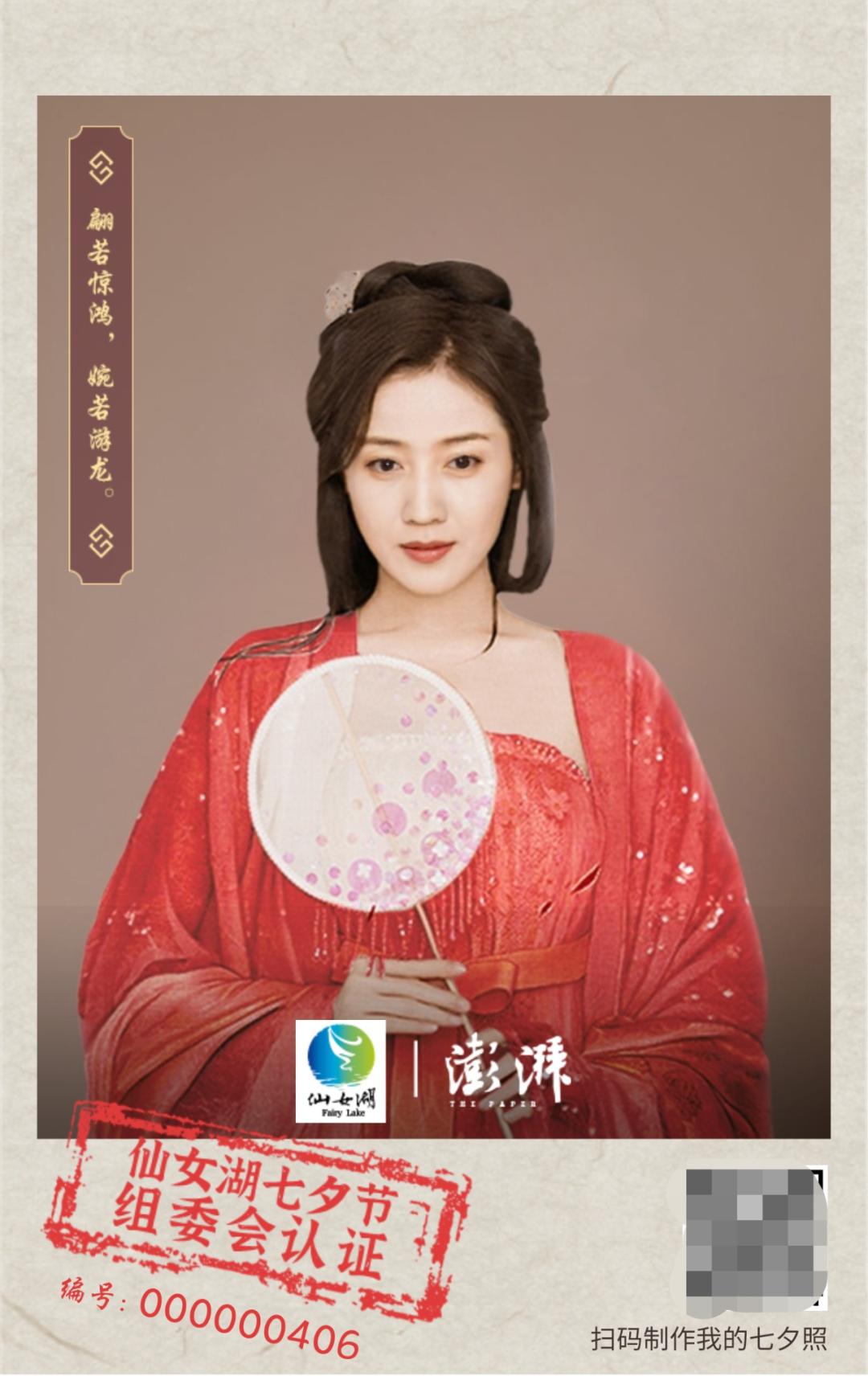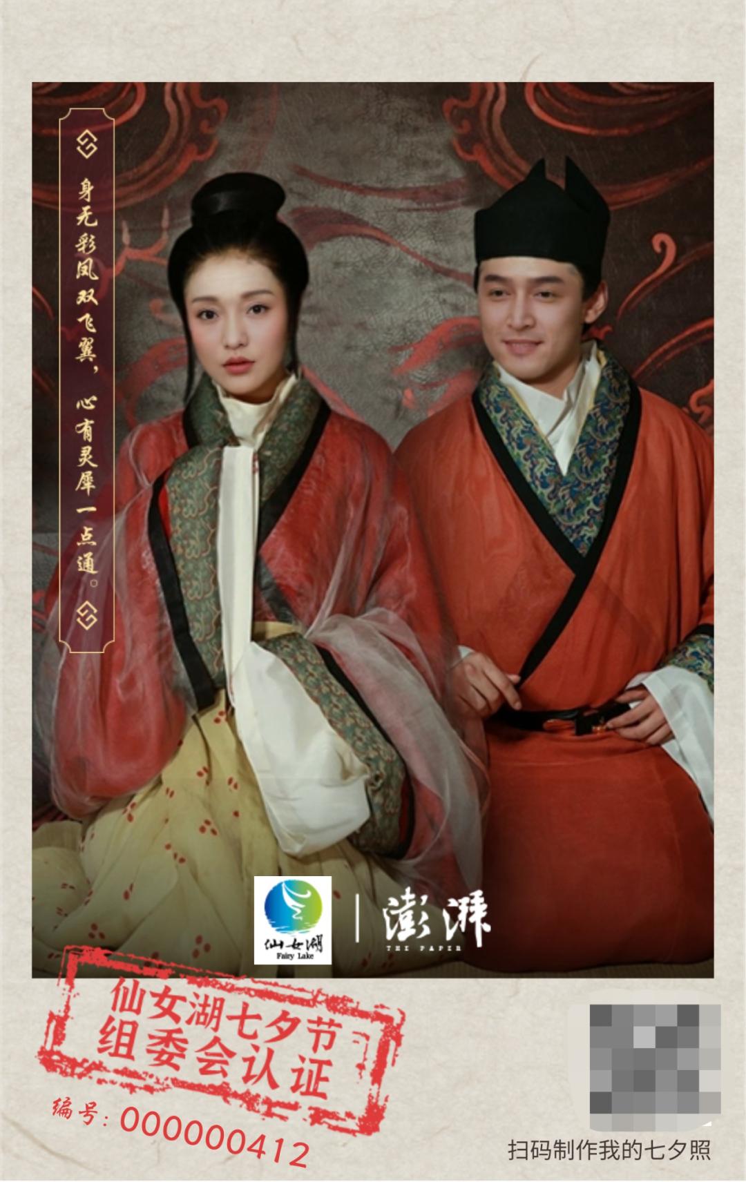 “虹裳霞帔步摇冠,钿璎累累佩珊珊。” 读到白居易的这首诗,古时头戴凤冠身披霞帔的新娘便浮现眼前。正逢“中国爱情节”七夕节到来之际,澎湃新闻和仙女湖七夕文化旅游节组委会自8月24日起,邀请广大网友“着古装披华服”,拍一张浪漫又特别的七夕照,来一场穿越千年时空的爱恋!如果你还是单身,也可以拍一张自己的仙女照。