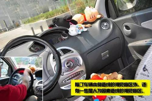 ① 前盲区:引擎盖前看不到的地方,俗称前盲区。影响前盲区大小的因素主要有车身、座椅高度、车头长度、驾驶人身材等。