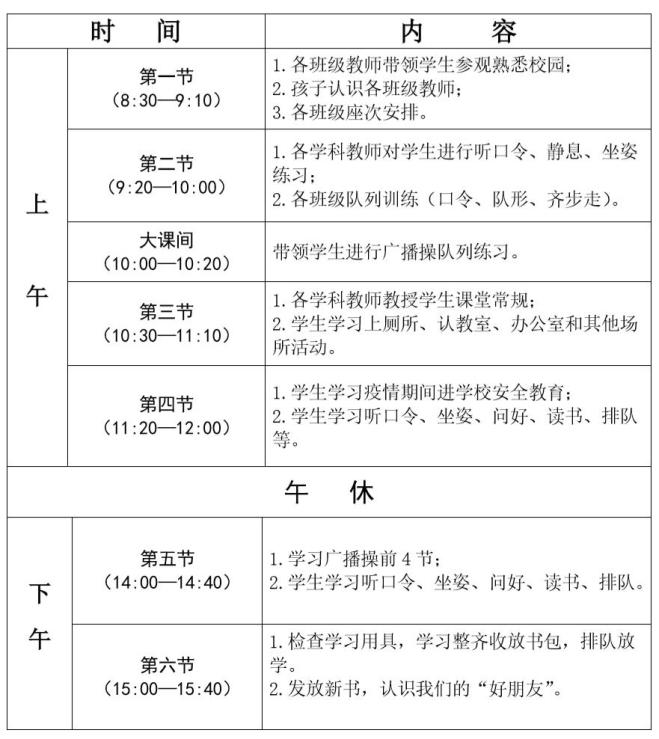9月1日正式上课,中餐在学校就餐,15:40放学。