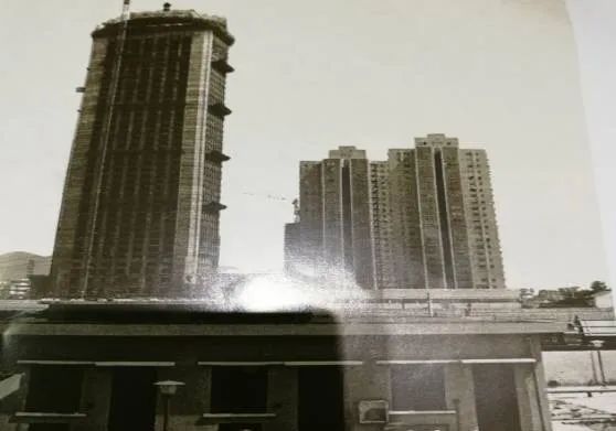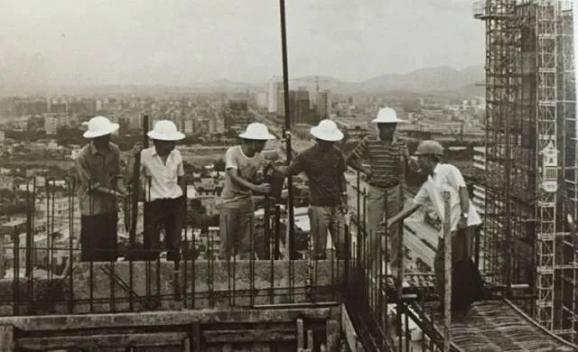 深圳电子大厦施工现场。工程由基建工程兵第1支队深圳指挥所承建,1981年8月动工,1982年11月竣工,它是深圳第一栋高层大厦,是标志性建筑。(摄影:周顺斌)