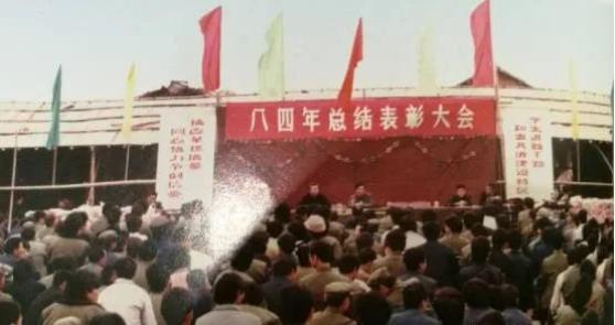 1984年,竹子林基地。市二建公司(原16团)召开年终总结表彰大会,争取在新的一年里取得更大成绩。(市建业集团公司供图)