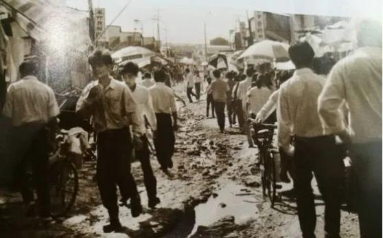 谁能想到这里后来建起了深圳第一高楼——地王大厦?改革开放前,这里是深圳供应香港食品的火车转运站。每天运输猪牛羊的货车抛洒下大量的动物粪便,进入深圳的基建工程兵部队302团经常组织战士前来清扫卫生。(摄影:杨洪祥)