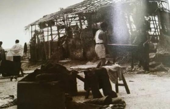 刚来到深圳的基建工程兵战士们住在竹棚里,强台风摧毁了90%以上的竹棚。(摄影:杨洪祥)