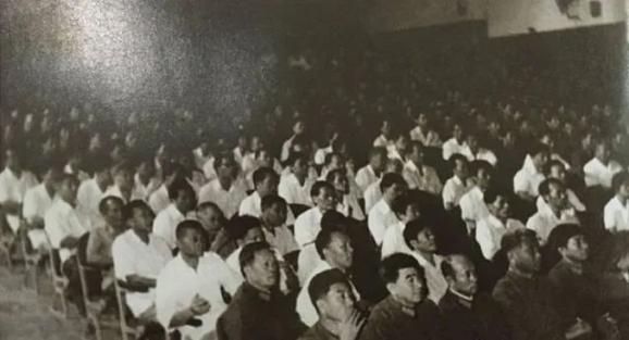 原基建工程兵19团后第三建筑公司在营区召开大会,动员干部战士勇当“特区拓荒牛”,为建设深圳贡献青春力量。(摄影:马树华)