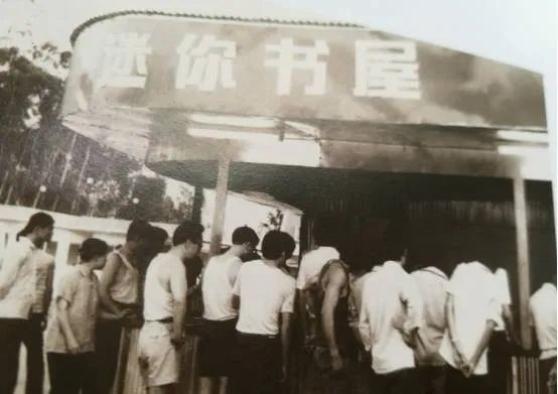 1982年,刚到深圳的部队干部战士们只能在这样简陋书屋里购书。图为红荔路市青少年活动中心附近的迷你书屋,光顾的记者很多。(摄影:杨洪祥)
