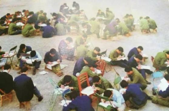 特区竞争的环境,造成了重视业务知识学习的风气。该照片摄于1983年,这是部队集体转业深圳后,战士们第一次参加全市工人技术等级考试的场景。(摄影:周顺斌)