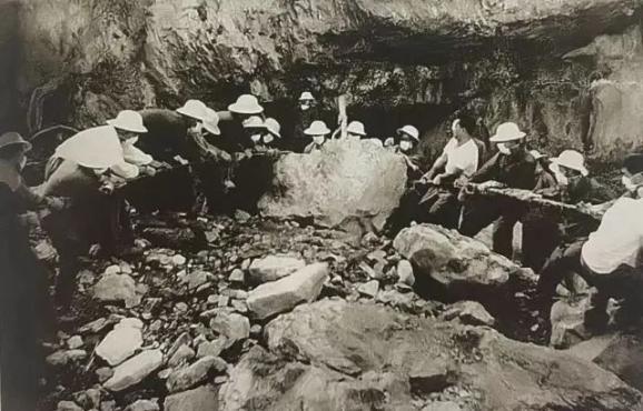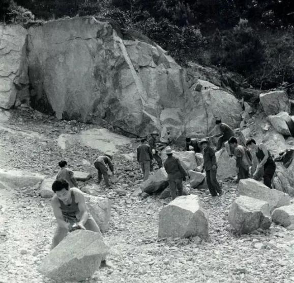 挖山开路。原302团(后市市政工程公司)的施工场面。(摄影:杨洪祥)