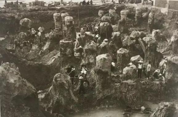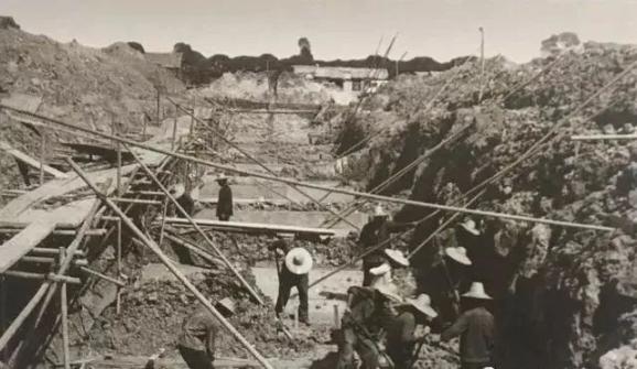 1981年,红岭大厦基础工地,1团战士参加开挖基础桩施工。(摄影:周顺斌)