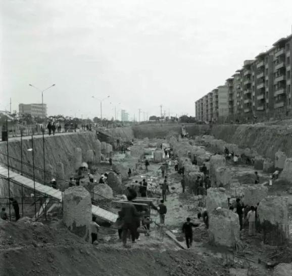 竹子林是基建工程兵几个团安营扎寨的基地,当时,这里还是一片工地的面貌。(市建工集团公司供图)