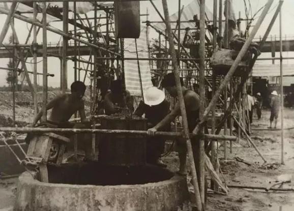 统建楼(位于深南中路)基础开挖工地。这是深圳早期最长距离大楼基础工程中挖孔桩施工现场,施工者是基建工程兵战士。(摄影:杨洪祥)