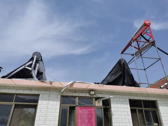 卢振生:原理是这样的,有日照的时候,太阳能里的水制热了,供暖,晚上九十点钟,没太阳,水的余热也消耗下去了,自动开始供热,一共是一万零八百,老百姓自己掏一千八国家给补贴9000块钱。