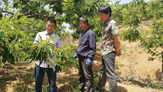 田海春:我最大的树龄是1996年栽的,20多年了,过去我们农村缺乏技术,管理上不去,有大小年。一是剪枝,一是树下管理水肥都不到位。卢书记请来果树大王给讲课,差了天地了,人家180多棵,年收入四五万。