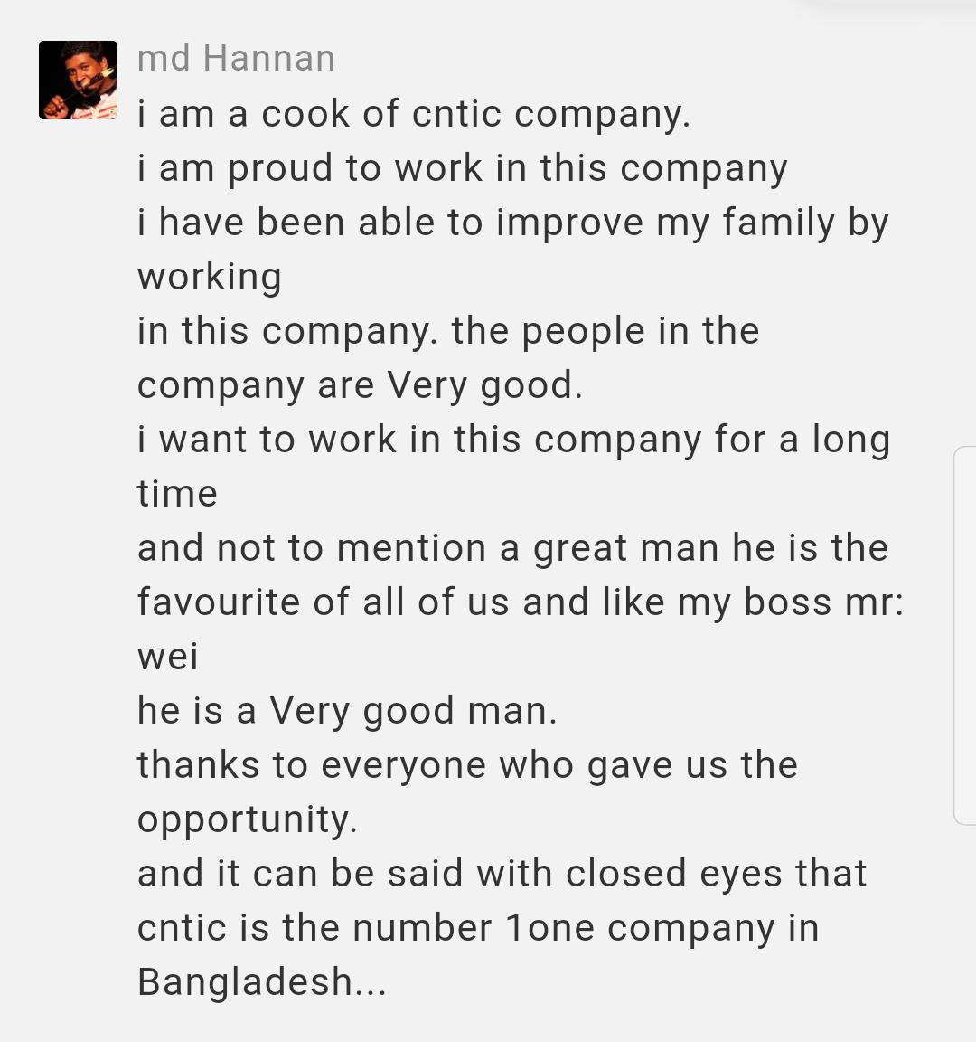 It’s been three years with CNTIC. From an ordinary Bangladeshi to an employee of a Chinese company, from a small office like a house to the establishment of a nice branch office today, from my growth to the resistance against the epidemic in Bangladesh with us together, I have witnessed so much in this company.