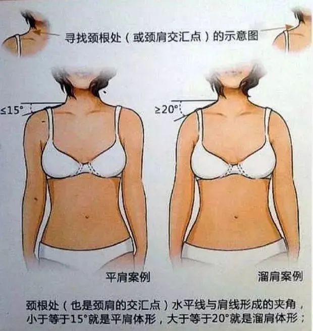 更专业的说法:颈根处(颈肩交汇点)水平线与肩线形成的夹角小于或等于15度,是肩部最好看的形态,而且颈部也会被衬托得更修长,身姿挺拔,气质笃增。
