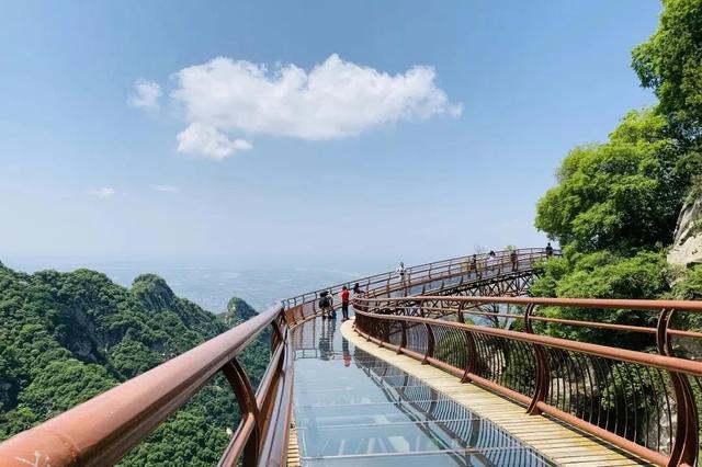 少华山,青山绿林连绵不断,90%以上的高覆盖率生态森林,爆表的负氧离子,这里有蓝天、白云、高山、草地,山水连绵,风姿卓越。西北首条双向悬空的玻璃栈道让很多游客胆战心惊。走在玻璃栈道上,蓝天白云。之下是无尽的绿意,在阳光的照射下如翡翠般清澈透亮,一切都变得光怪陆离、美轮美奂。