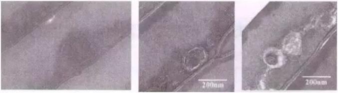 头发最外层是毛鳞片层,由几层硬而脆的角蛋白所组成。但是,在紫外线强烈的照射下,毛鳞片层会造成开裂甚至脱落。你们可以看一下下面这个实验,将头发放在紫外灯下照射,一段时间后,会发现经过紫外线照射的毛鳞片层出现了开裂。